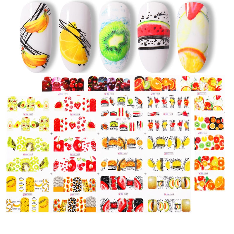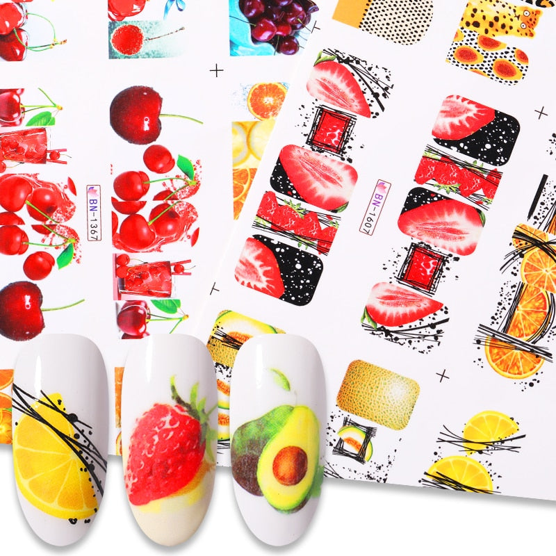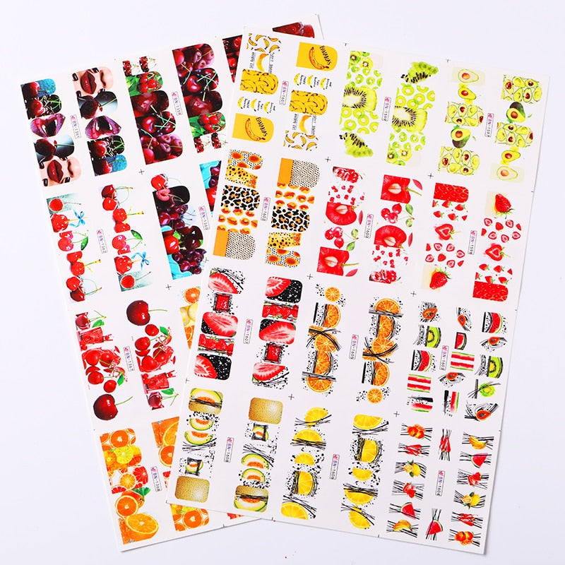 12Pcs Summer Fruit Water Decals Fruit/Kiwi/Banana/Lemon/ Strawberry Designs DIY Nail Stickers Wraps Slider Decoration