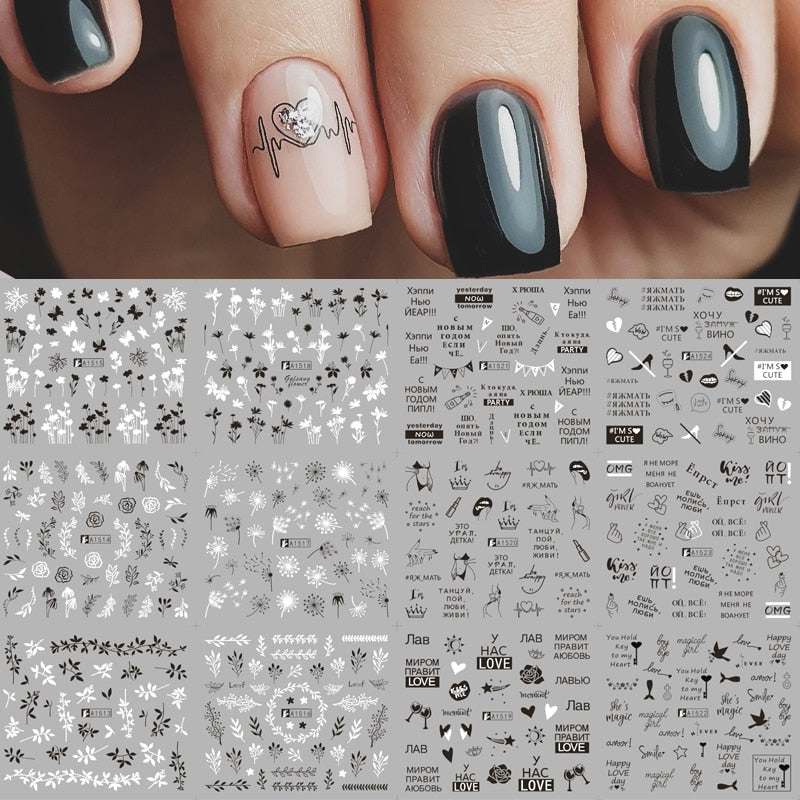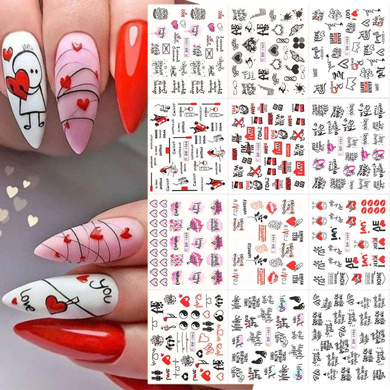 12pcs Valentines Manicures Love Letter Flower Sliders For Nails Inscriptions Nail Art Decoration Water Sticker Tips BN1489-1500