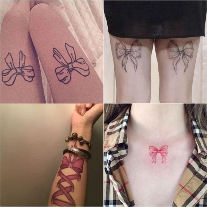 14pc/Lot Cartoon Bow Temporary Tattoo Stickers Female Waterproof Cute Sexy Art Fake Tattoo Finger Back Flower Arm Tattoo Sticker