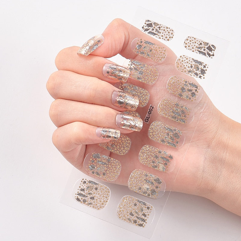 16 Tips/Sheet Glitter Series Powder Sequins Nail Decoration Nails Art Decoration Full Cover Nail Stickers Manicure Designed