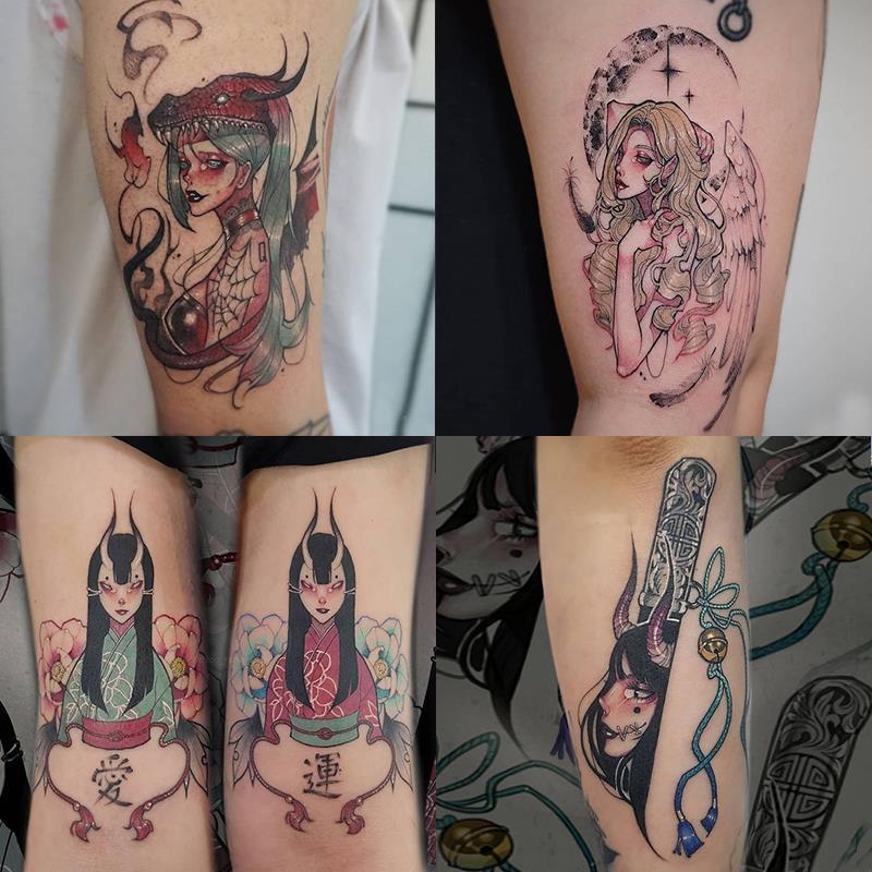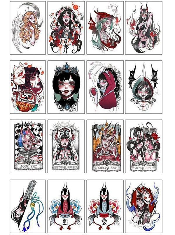 16pc/Lot Dark Witch Cartoon Temporary Tattoo Sticker Female Waterproof Anime Art Sexy Fake Tattoo Arm Wrist Leg Tattoo Sticker