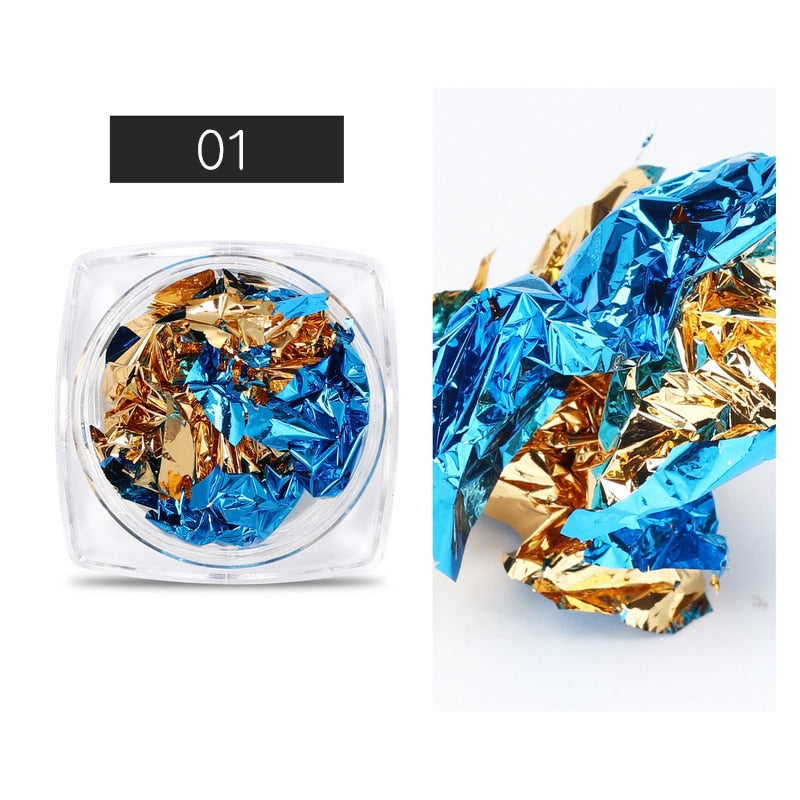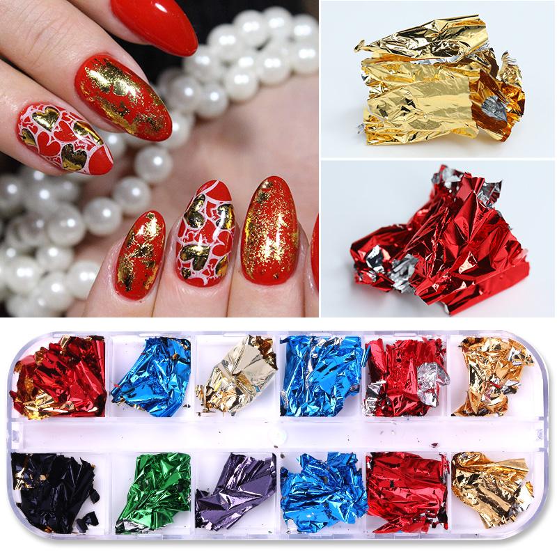 1Box Gold Silver Green Nail Art Foil Paper Colorful Irregular Aluminum Nail Sticker Glitter Gel Polish Decoration