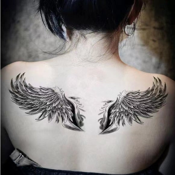 1Pair Black Wings For Shoulder Temporary Tattoo Stickers Men Women Waterproof Fake Tattos Big Size Flash Decals Tatoos