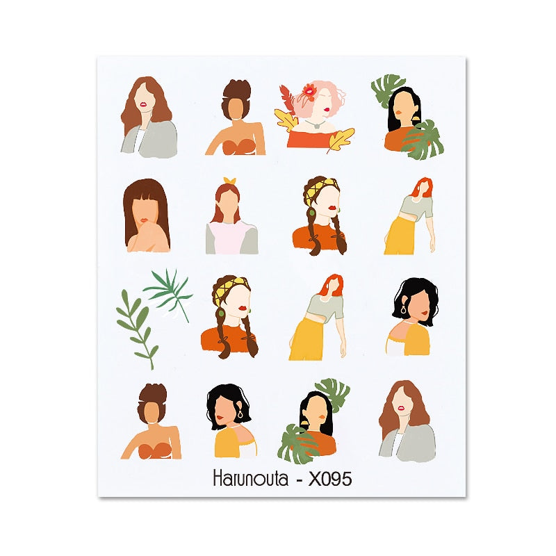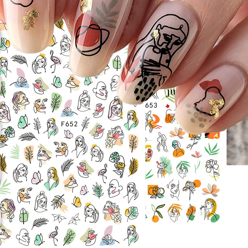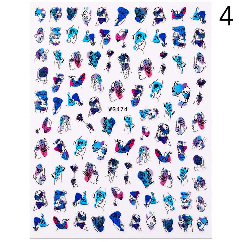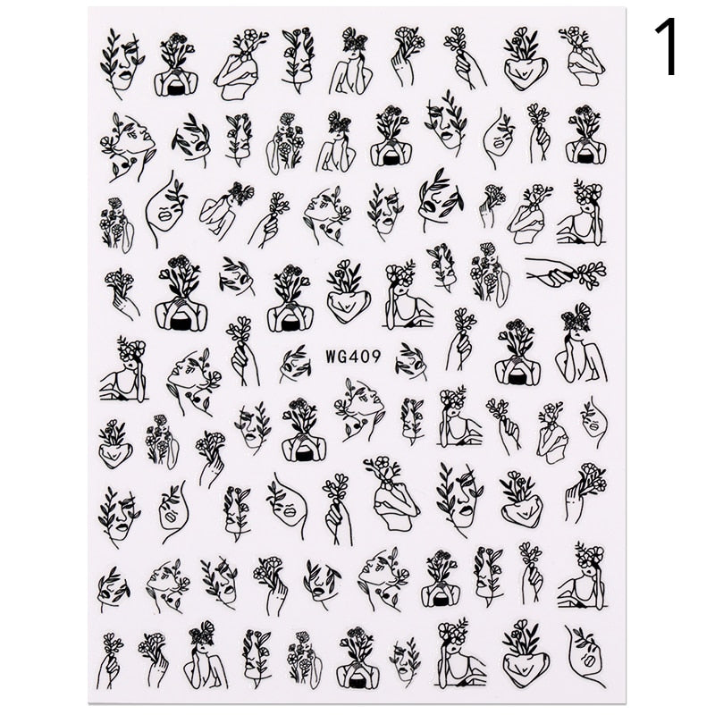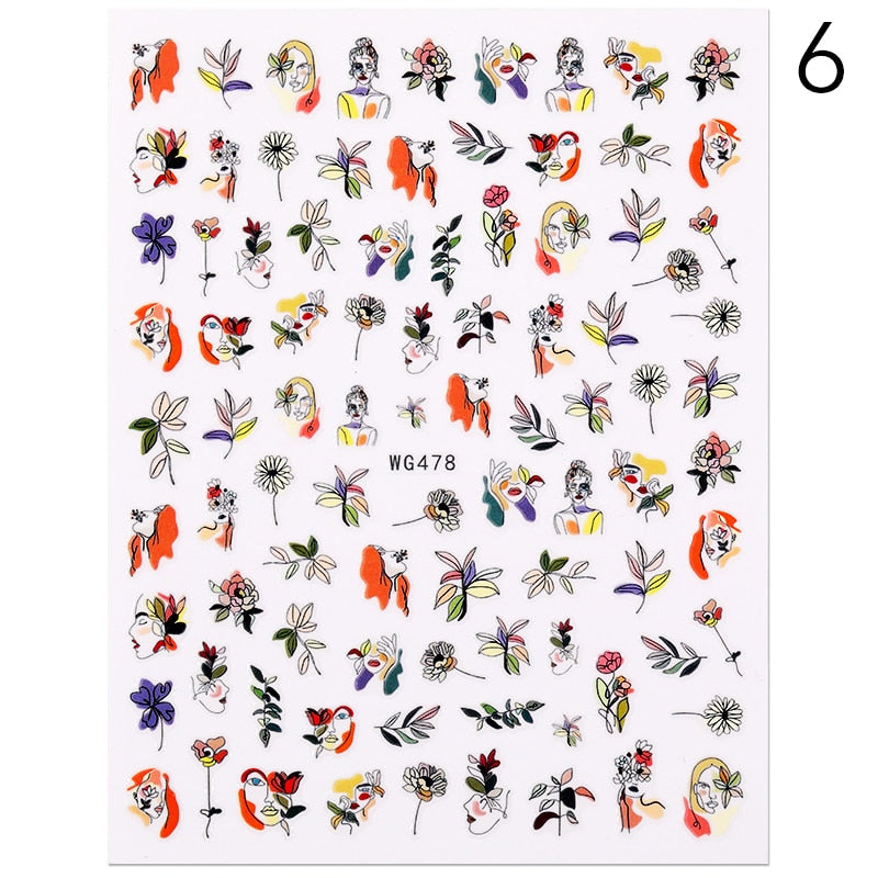 1PC 3D Nail Sticker Stick Figure Woman Face Pattern Special Transfer Picture Flowers Sliders Sticker DIY Nail Art Decoration