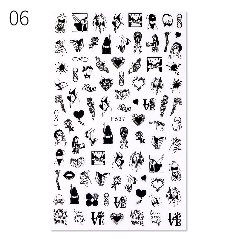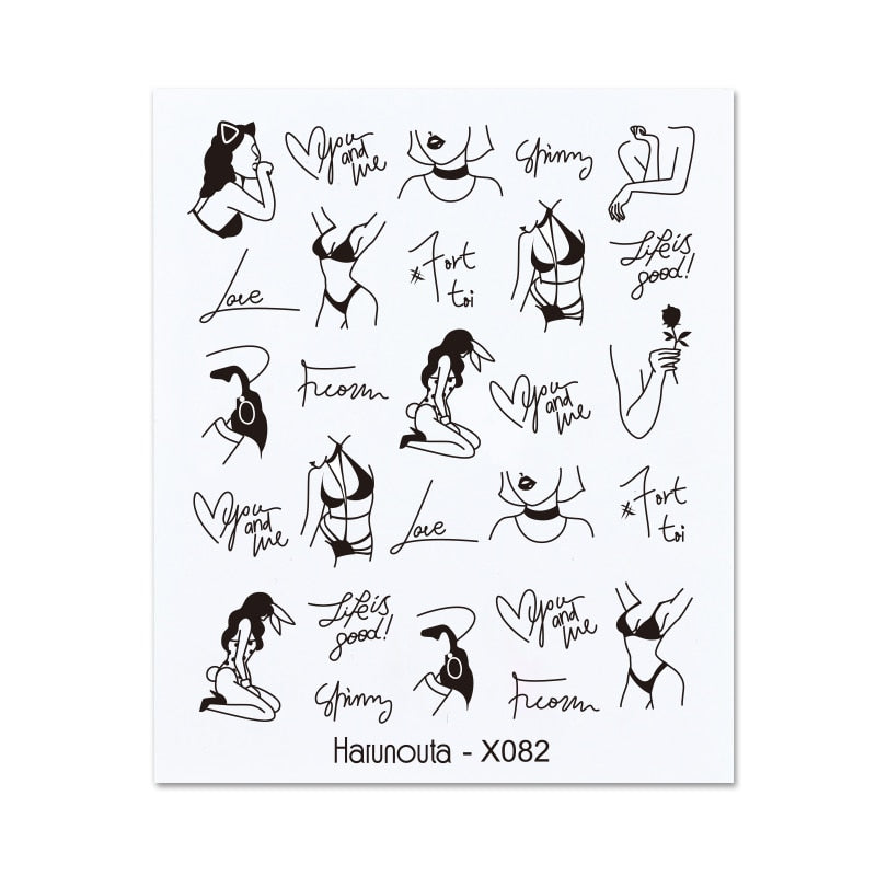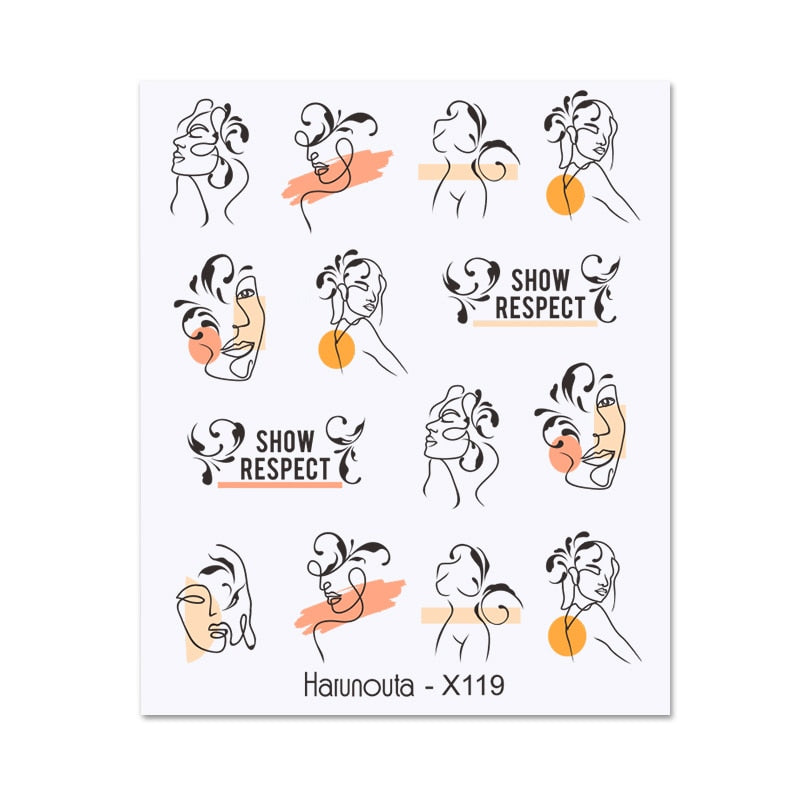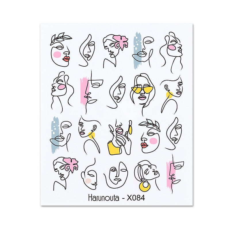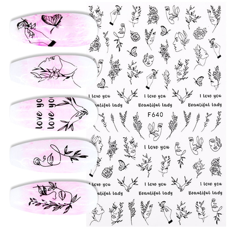 1PC 3D Nail Sticker Stick Figure Woman Face Pattern Special Transfer Picture Flowers Sliders Sticker DIY Nail Art Decoration