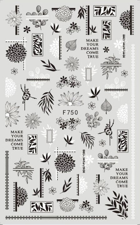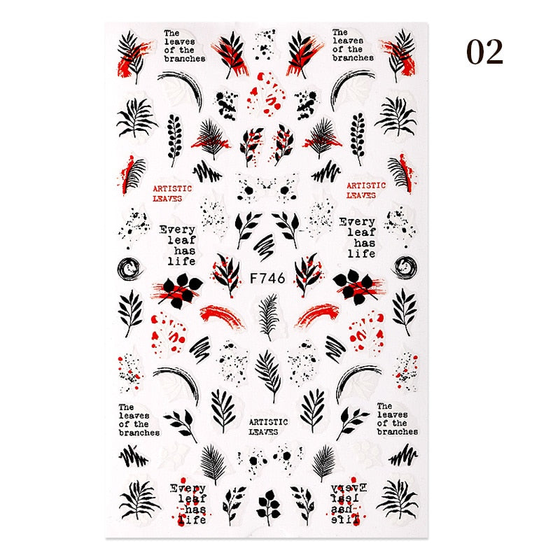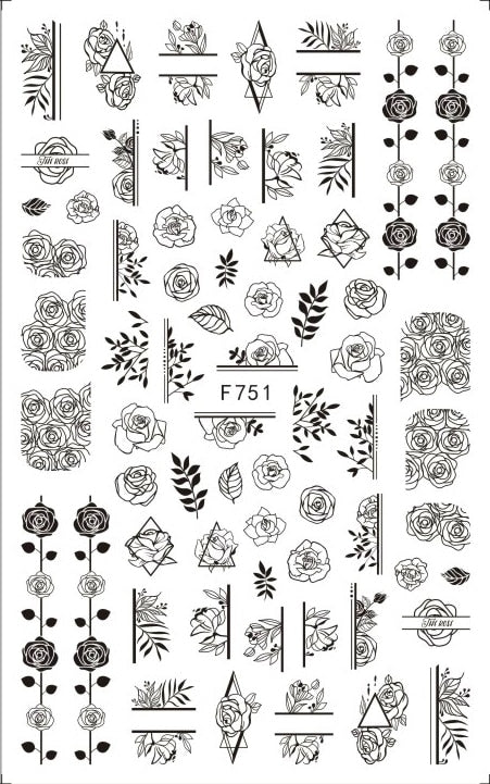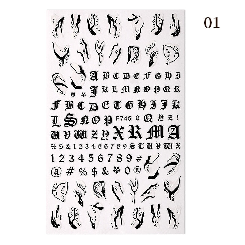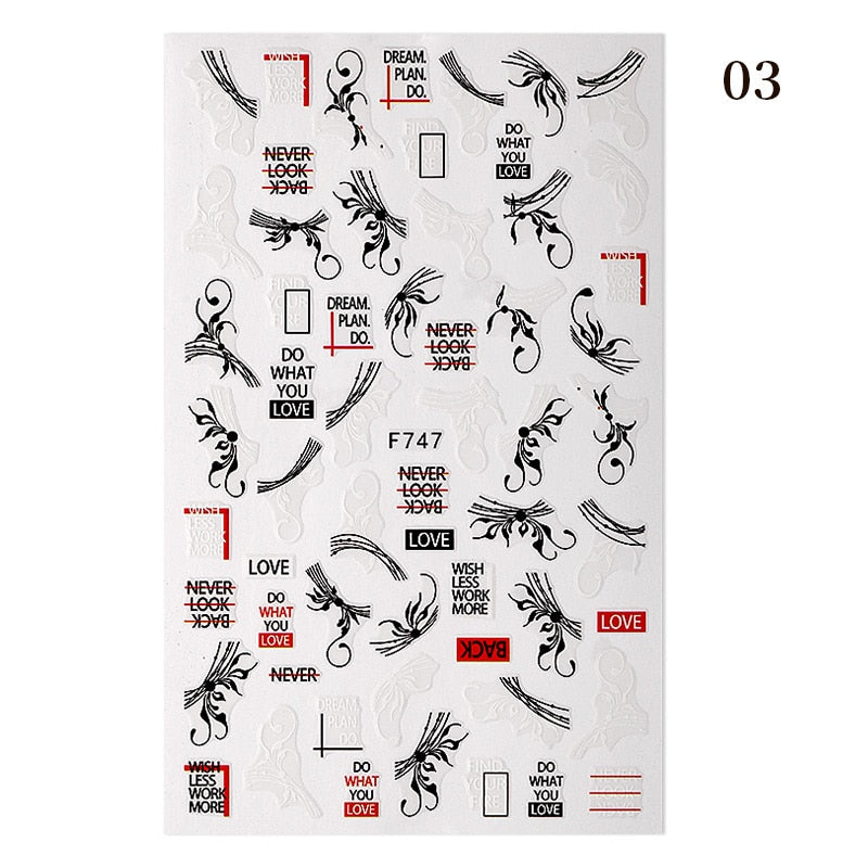 1PC Black Rose Flower Leaves 3D Nail Stickers Colorful Lines Waves Alphabet Sticker Slider Nail Art Decoration For Manicuring