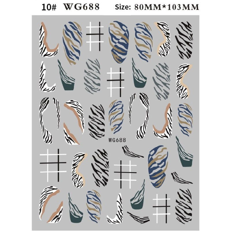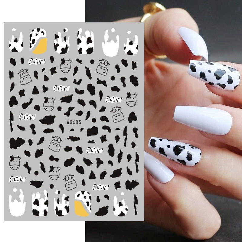 1PC Black White Milk Cow Pattern 3D Nail Stickers Geometrics Lines Leopard Milk Cows Decals Sliders Wraps DIY Decorarion
