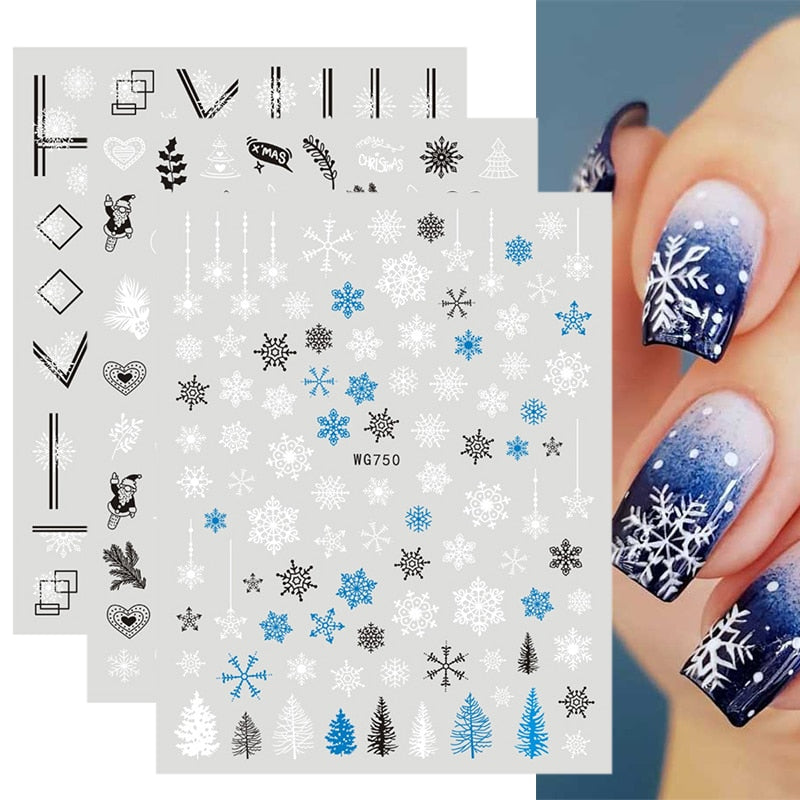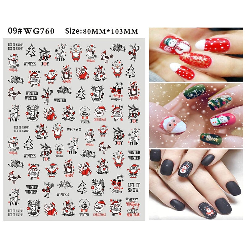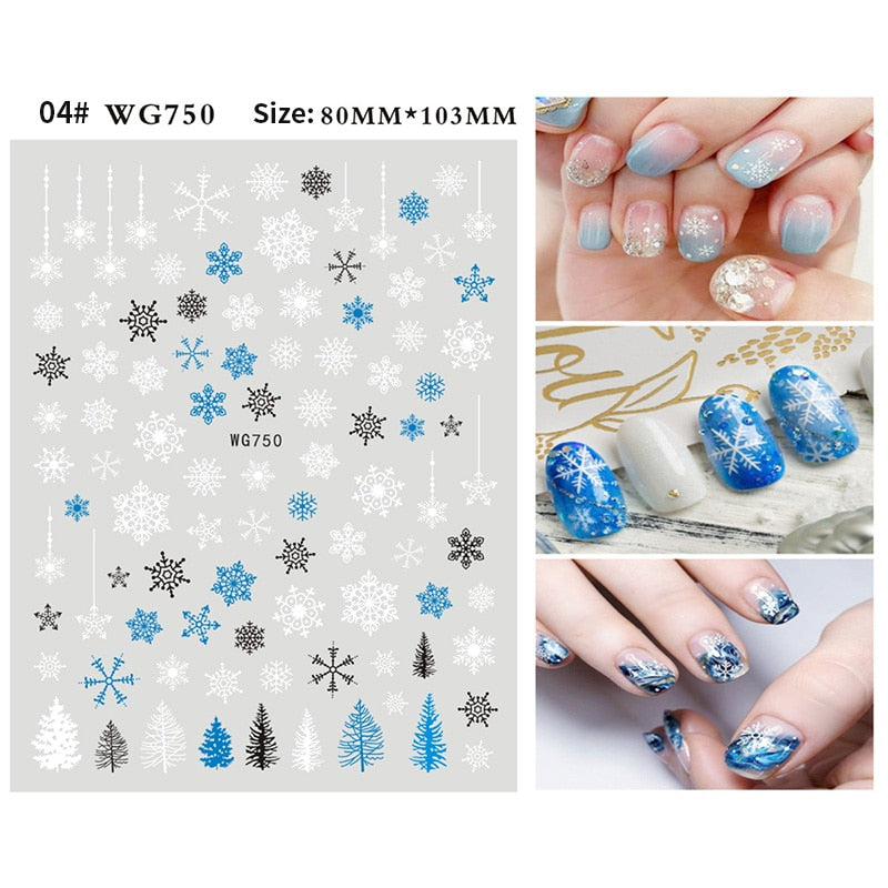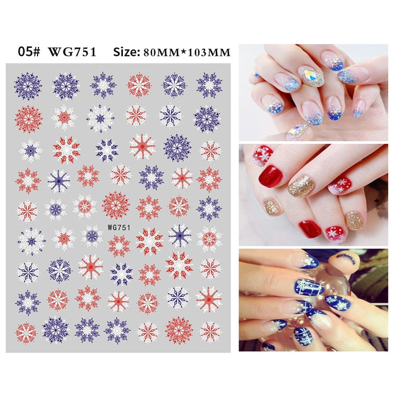1Pc Christmas 3D Nail Stickers Snowflake Snow Man Elk Transfer Slider Nail Art Decotaion For Winter Sliders Foils Manicures