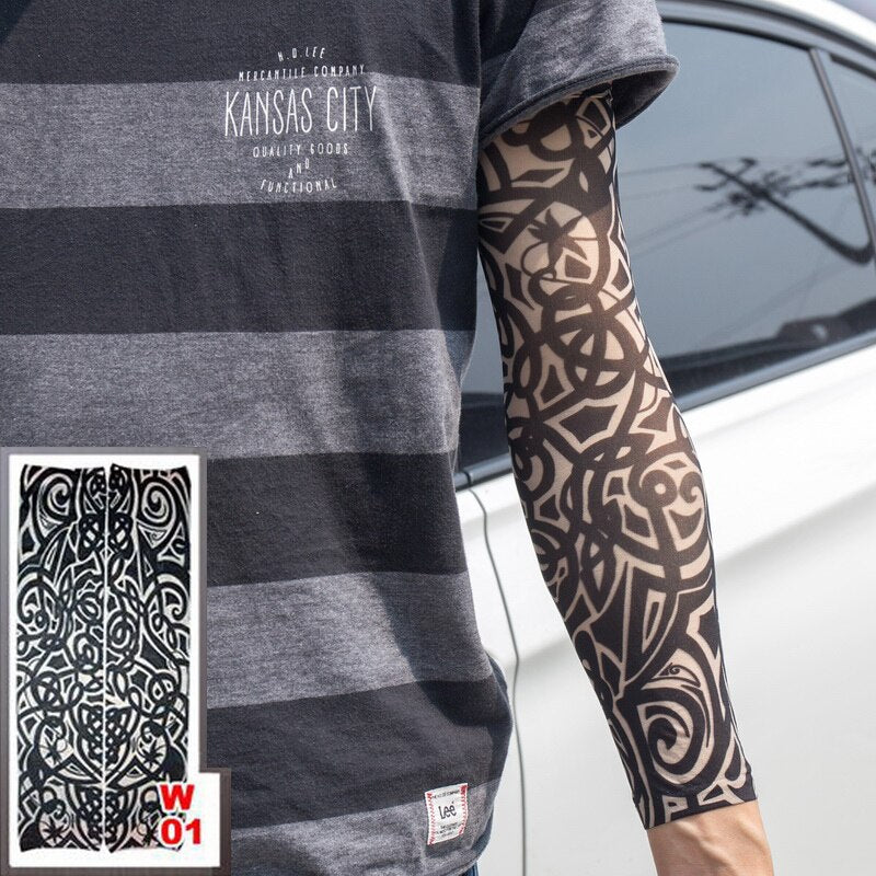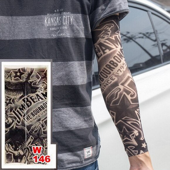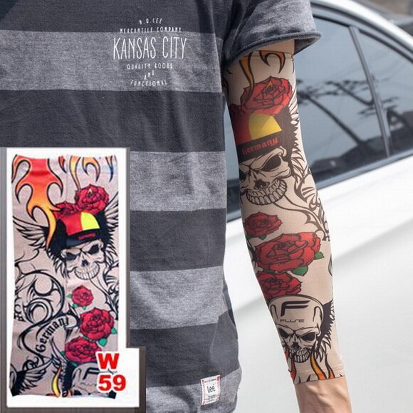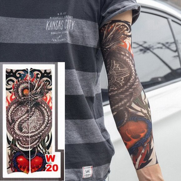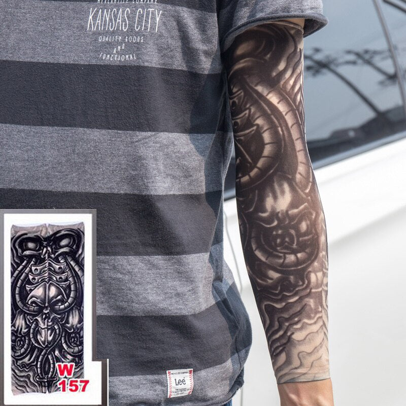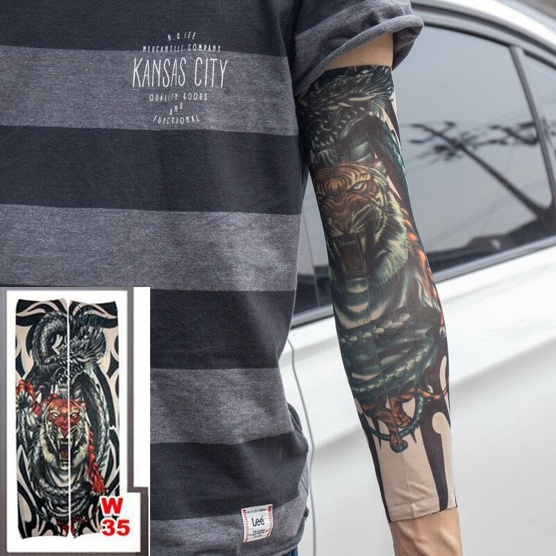1pc hot sale tattoo sleeve styles elastic Fake 100%nylon Arm stocking beloved girl Buddha Wolf Dragon design halloween cool men