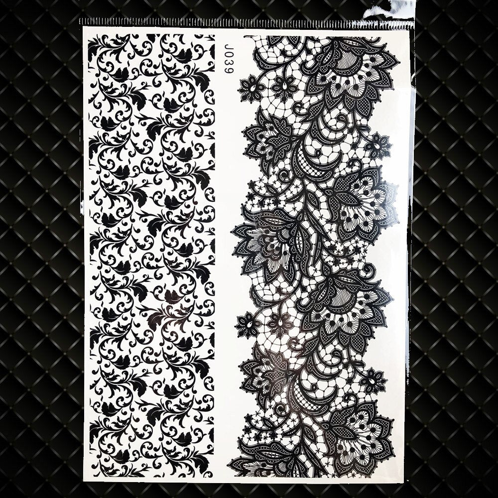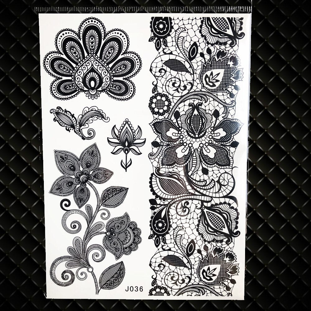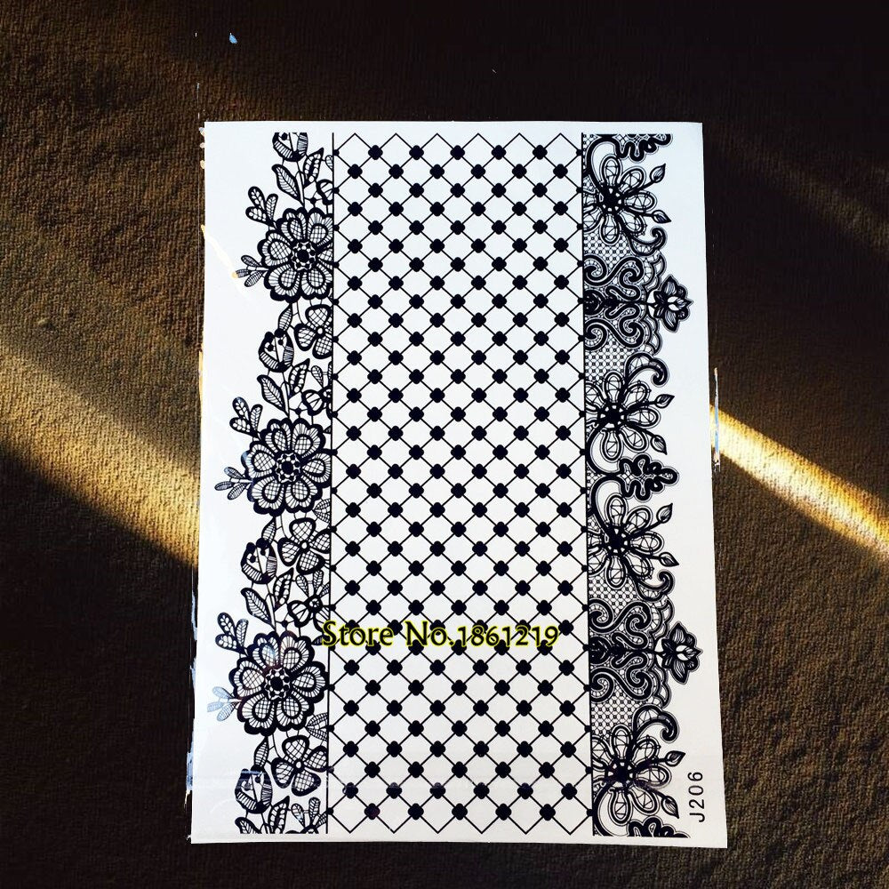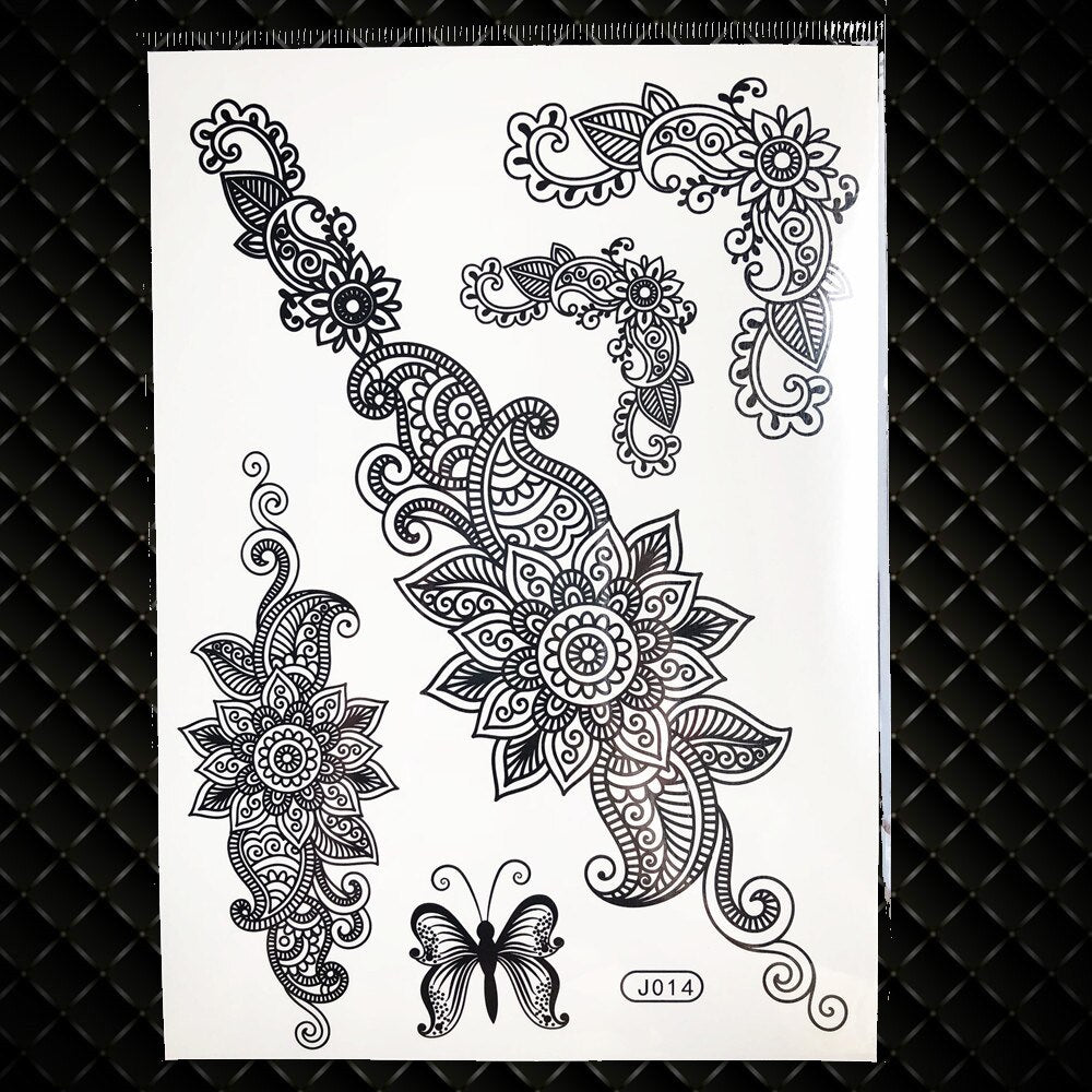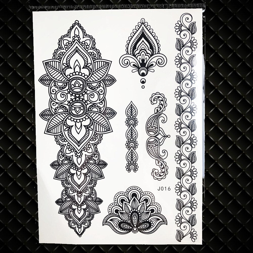 1PC Large Henna Tattoo Stickers For Wedding GBJ206 Black Ink Lace Henna Paste Women Party Brides Flower Temporary Tattoo 21x15CM