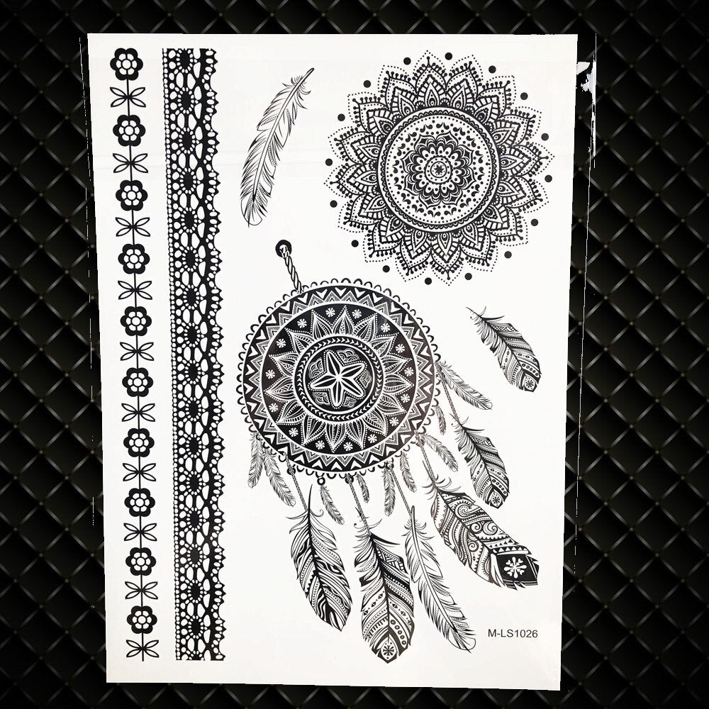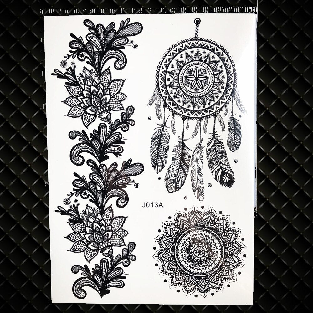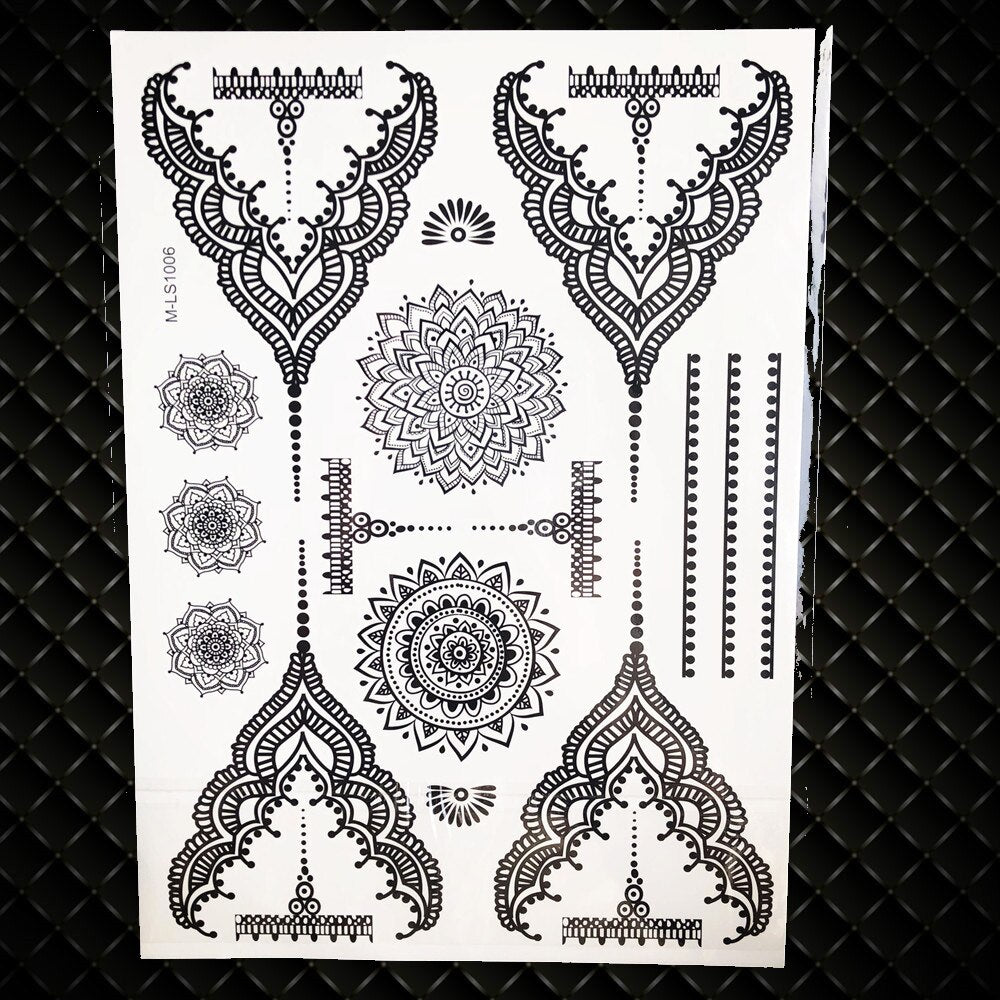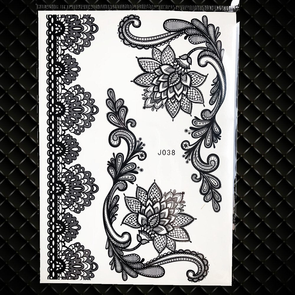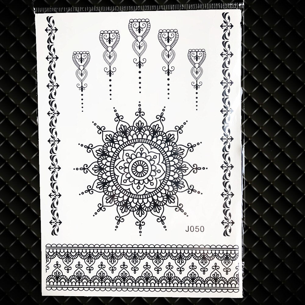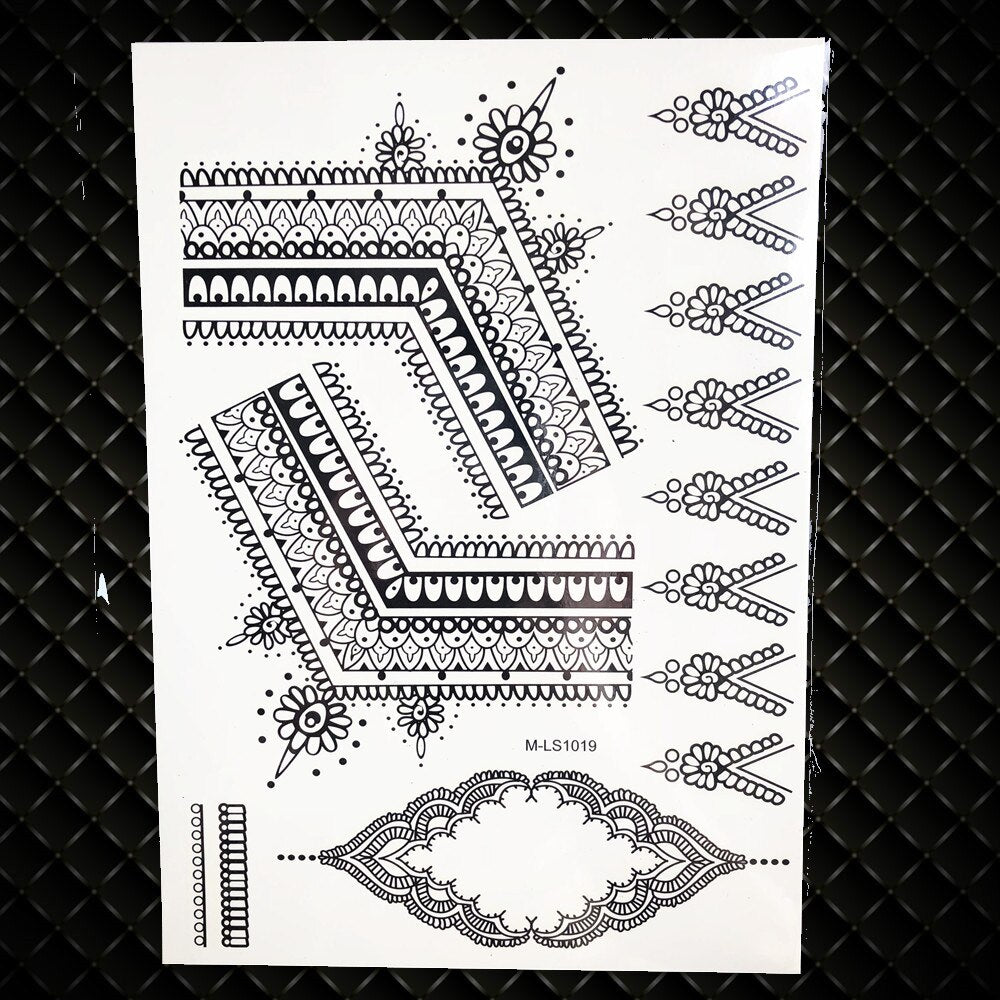 1PC Large Henna Tattoo Stickers For Wedding GBJ206 Black Ink Lace Henna Paste Women Party Brides Flower Temporary Tattoo 21x15CM