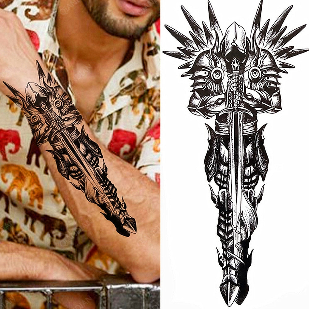 1pc Lion Men Waterproof Tattoos Fake Stickers Arm Cool Black Christ Cross Transfer Washable