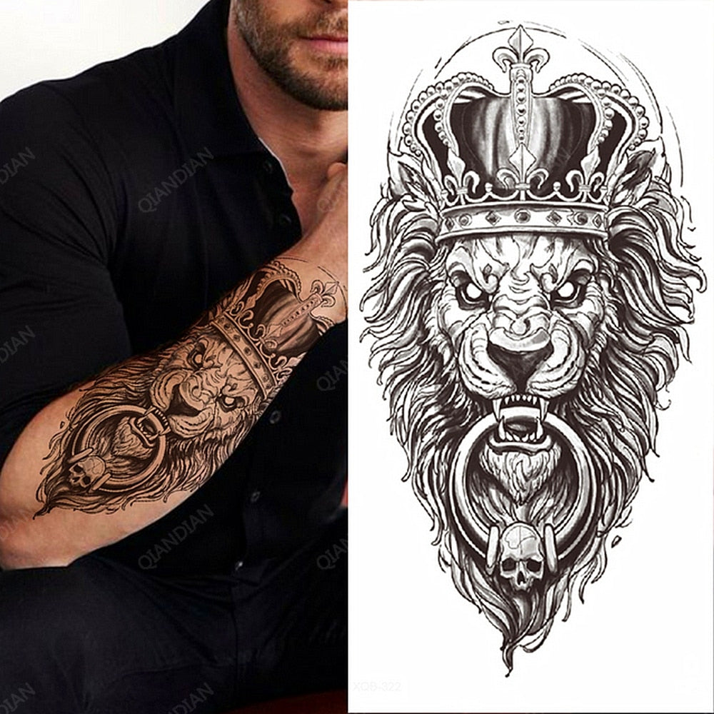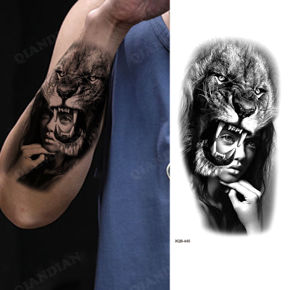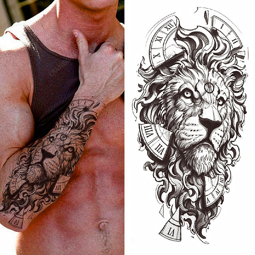 1pc Lion Men Waterproof Temporary Tattoos Fake Stickers Arm Hand Cool Art Black Transfer Clock