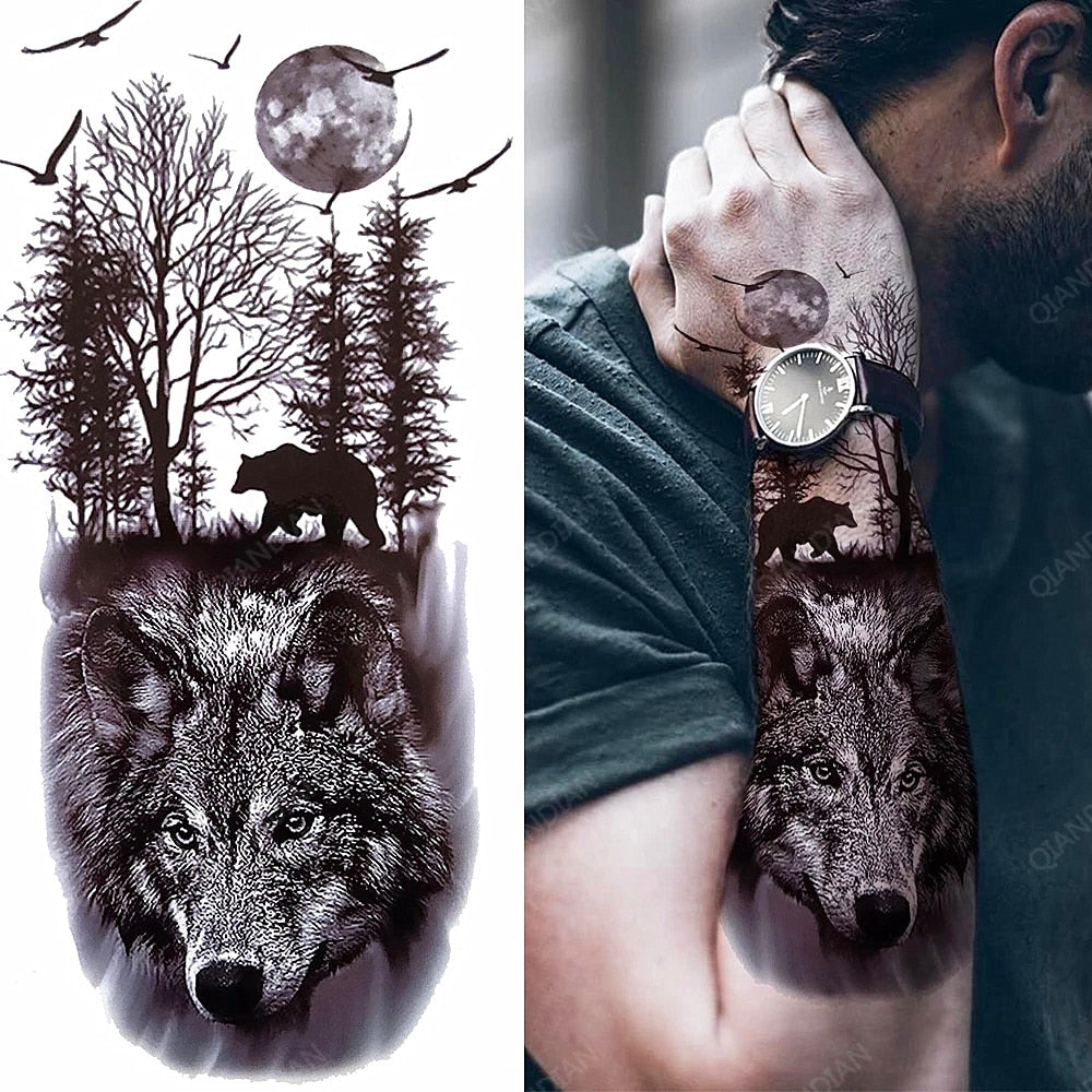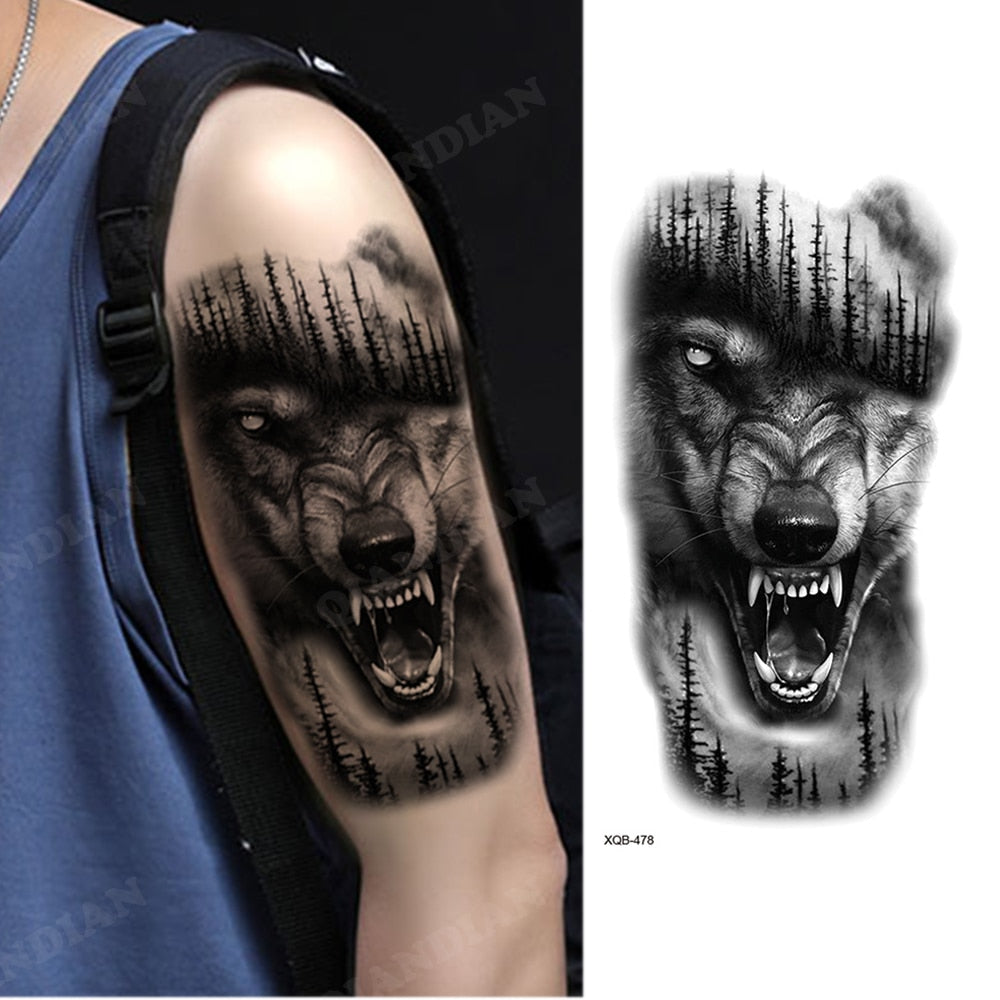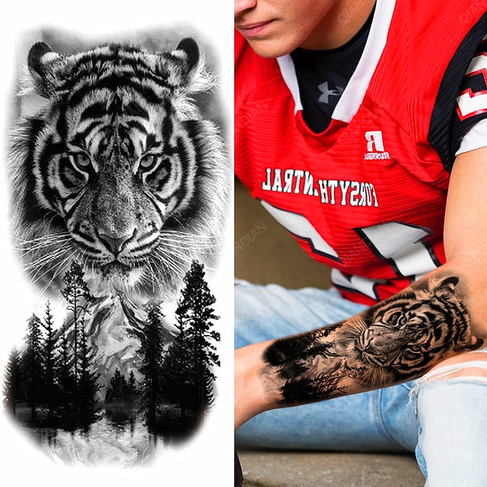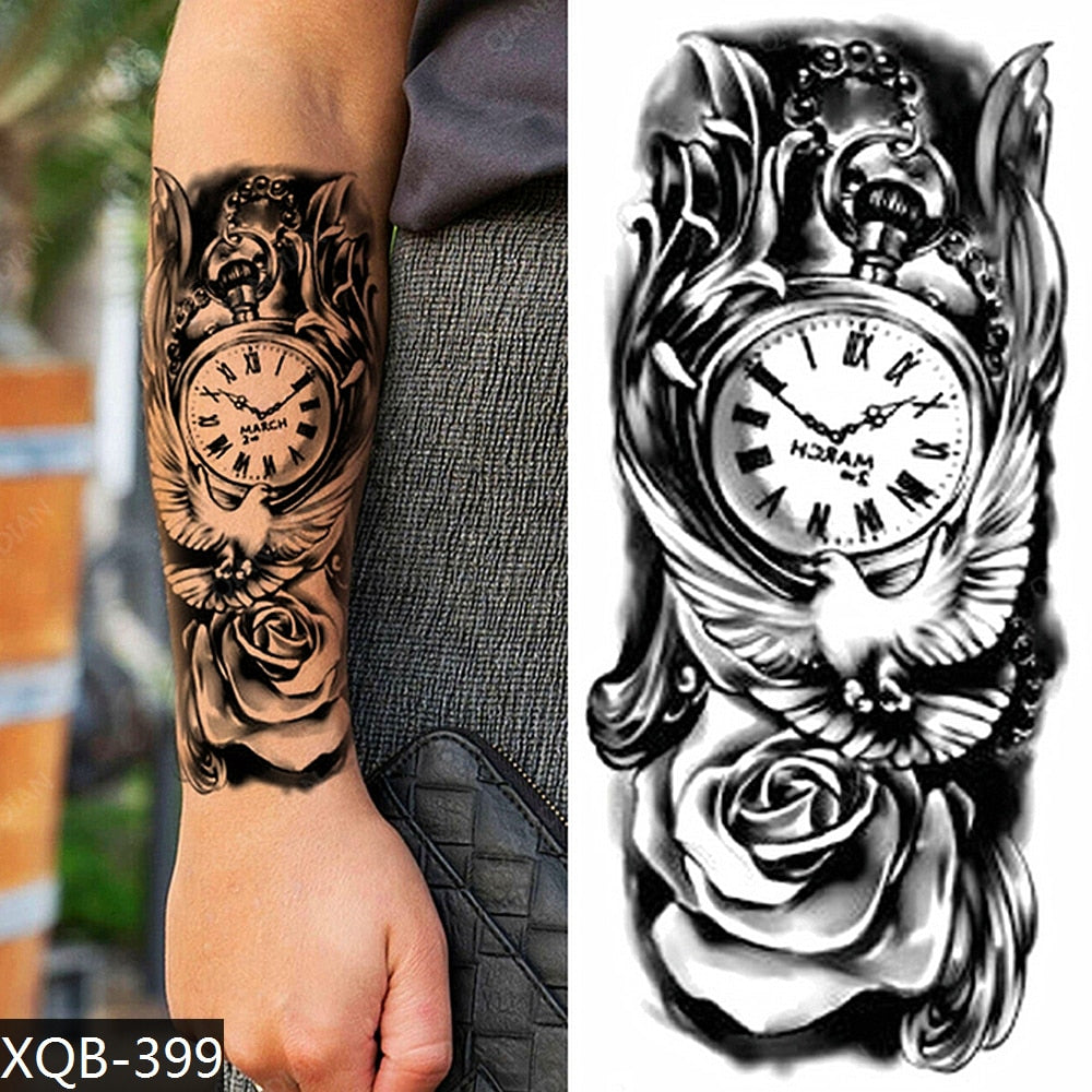 1pc Lion Men Waterproof Temporary Tattoos Fake Stickers Arm Hand Cool Art Black Transfer Clock