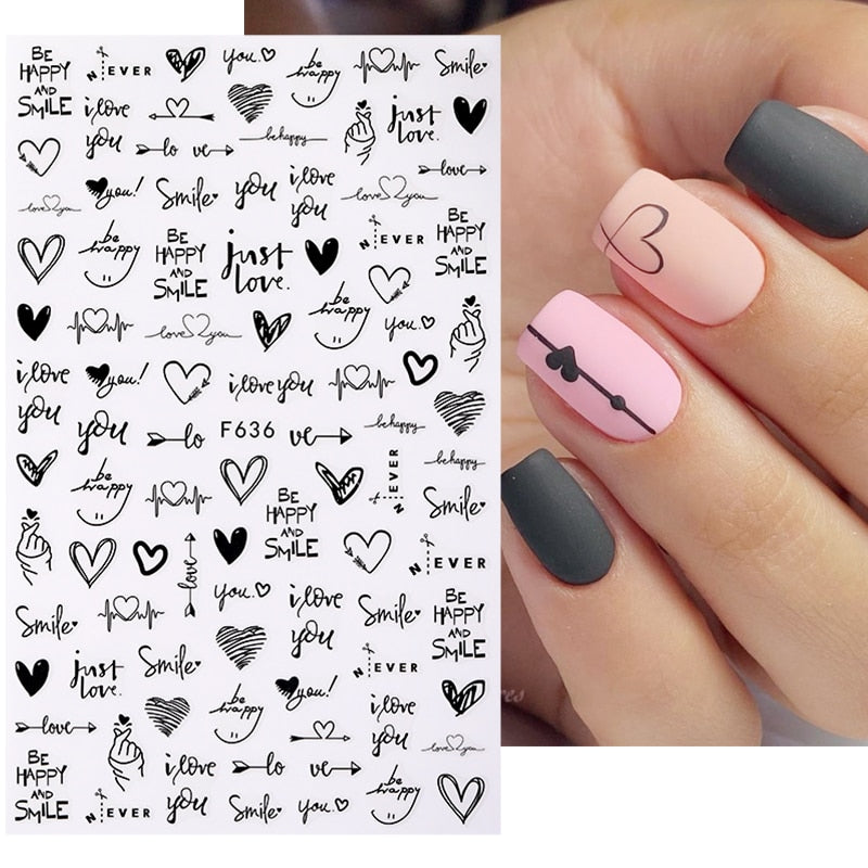 1PC Love Letter Flower Design 3D Nail Sticker Cool English Letter Sexy Girl Trasnfer Sliders For Nails DIY Accessories Maincures