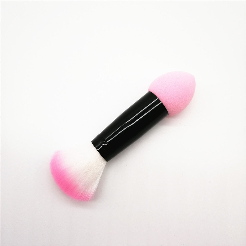 1pc Professional Blush Brush Soft Nylon Hair Make Up Brushes Two Head Metal Handle Blusher Cosmetic Tools with Foundation Sponge