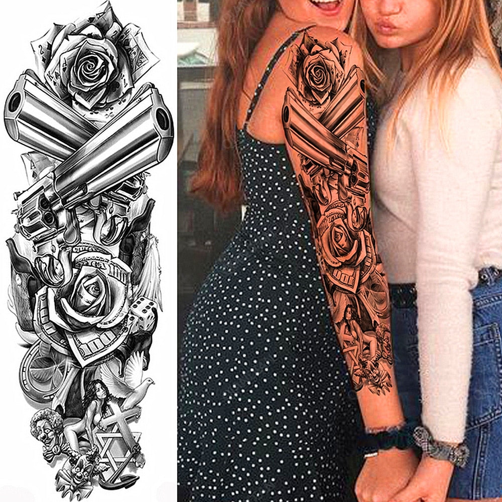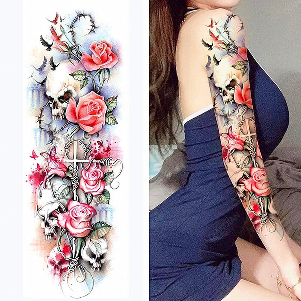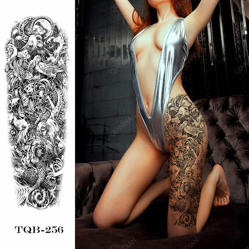 1pc Women Waterproof Temporary Tattoos Stickers Thighs Cool Hipster Skull Mermaid