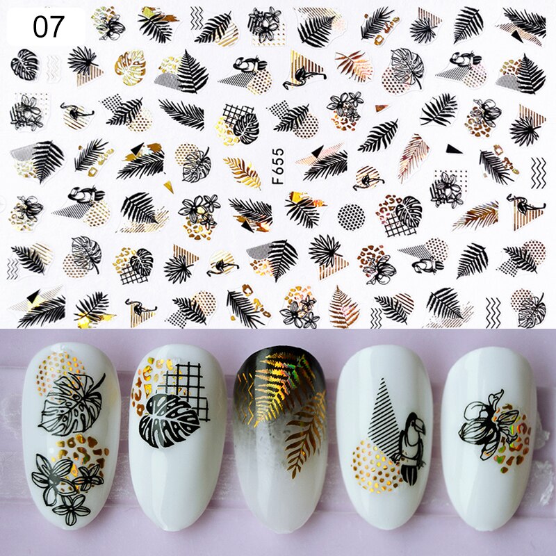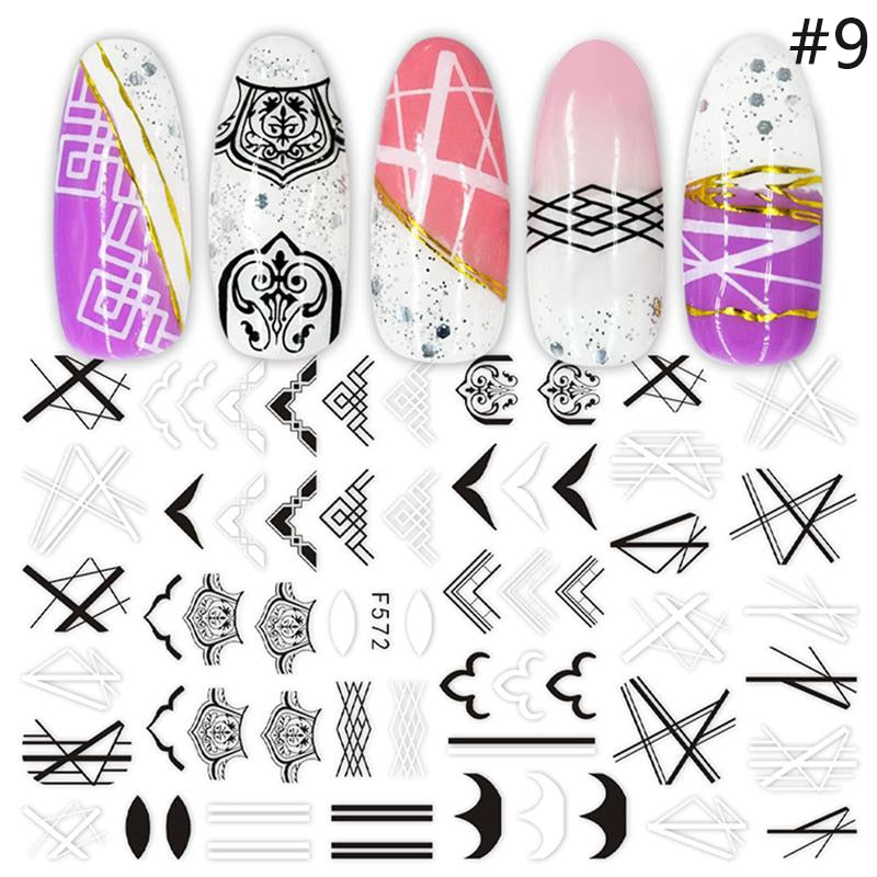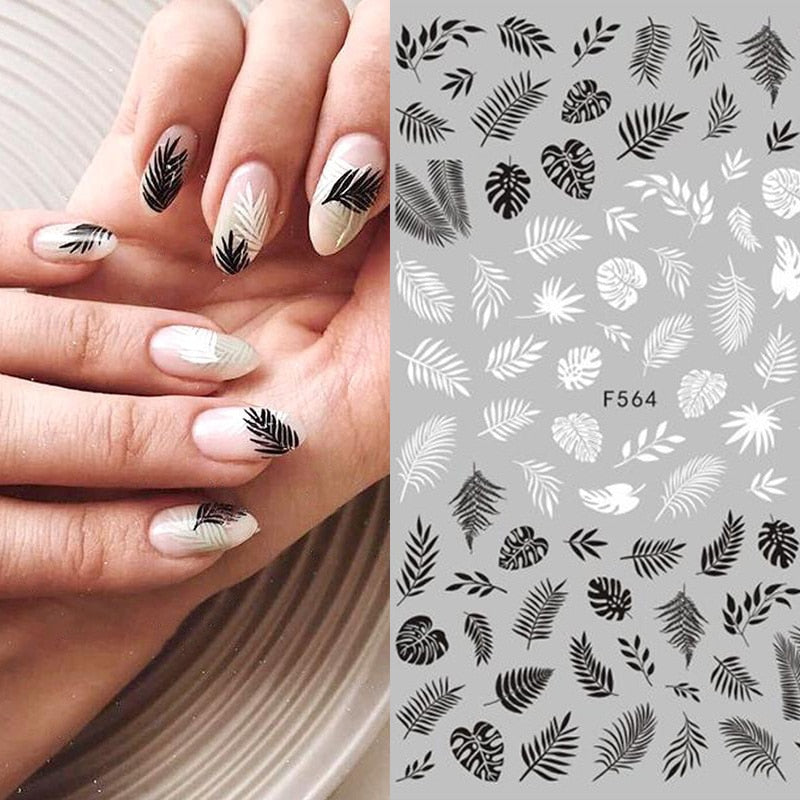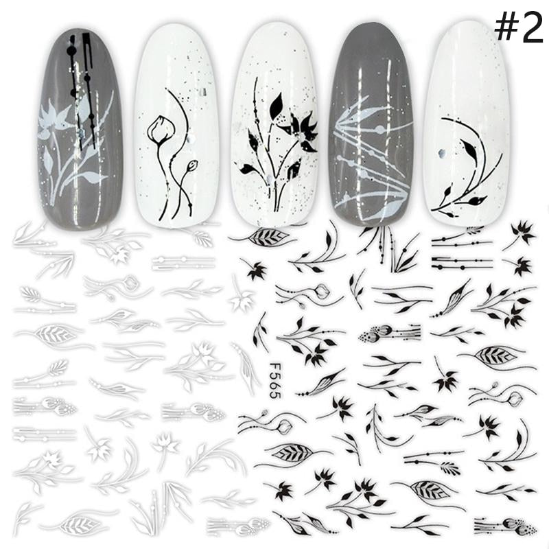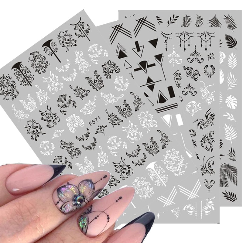 1pcs Black White Letter Stickers For Nails Flower Leaf Linear Transfer Decals Slider 3D Nail Art Decorations Wraps