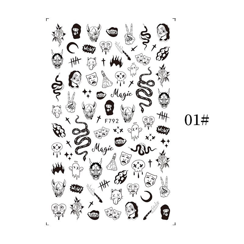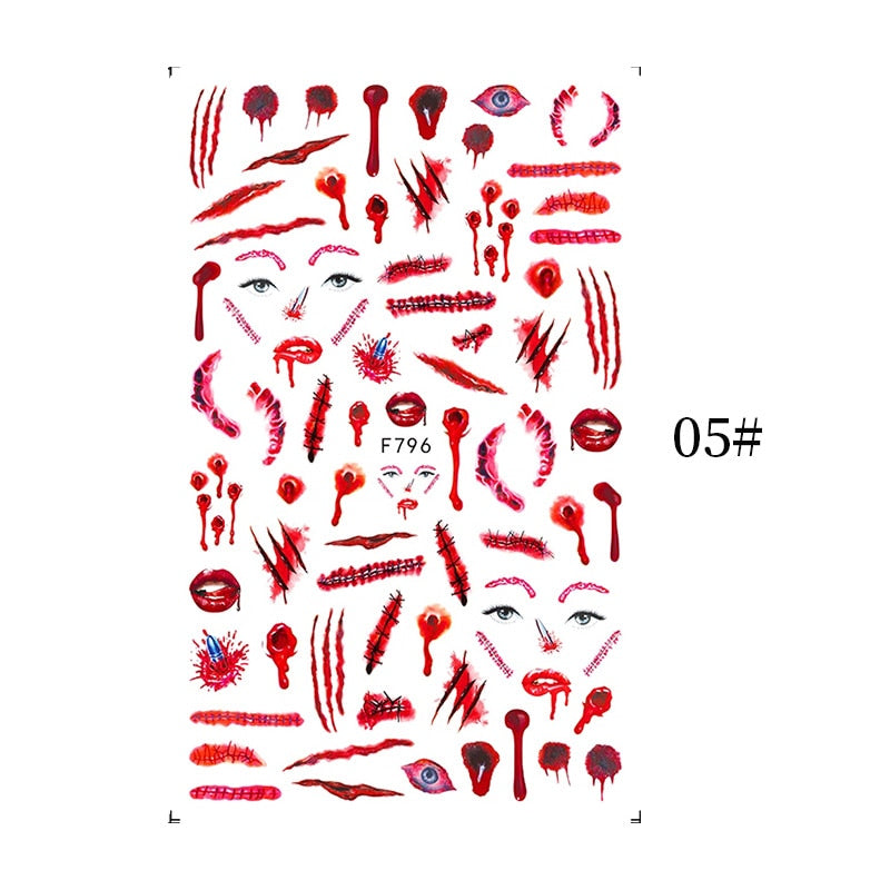 1PCS Bloody Halloween Theme Nail Foil Stickers Red Hand Scar Lips Snake Anime Nail Design 3D ManicureS Gel Polish Decor Sliders