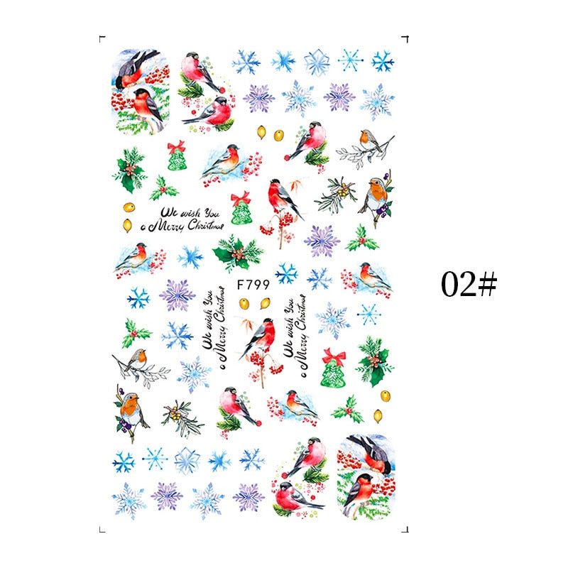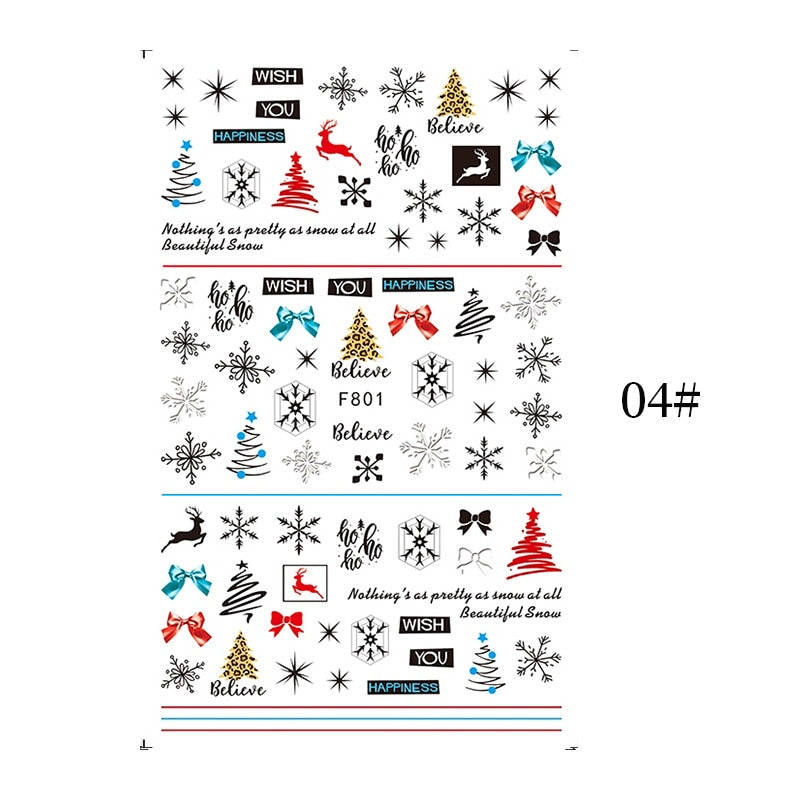 Design 1: Christmas Elk Snowflakes Adhesive 3D Nail Stickers