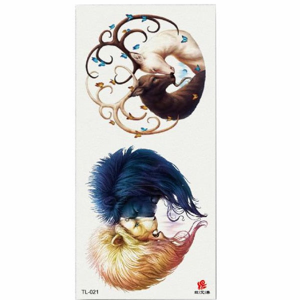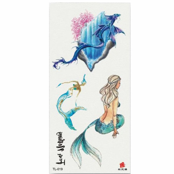 1pcs Flower Animal Body Art Temporary Waterproof Tattoo Sticker Wolf Mermaid Designs