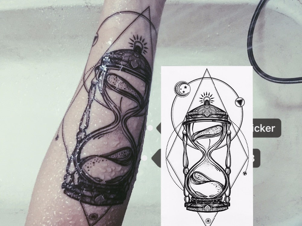 1pcs Time hourglass arms BlacBlack White Large Flower Henna Temporary Tattoo Black Mehndi Style Waterproof Tattoo Sticker