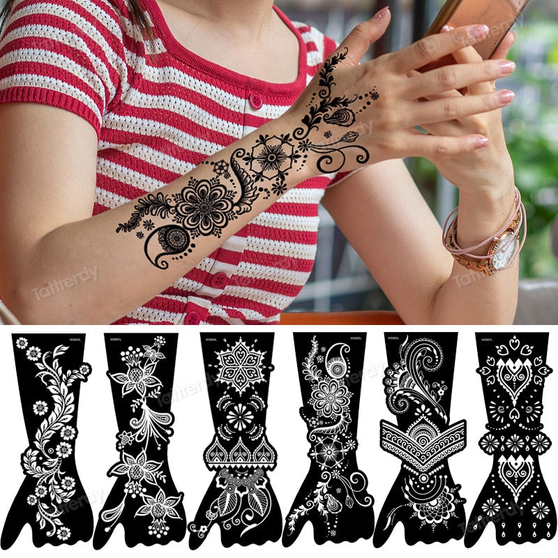 1Sheet Henna Tattoo Templates Temporary Glitter Airbrush Wedding Mandala Henna Tattoo Stencils Hand Finger Stencil For Painting