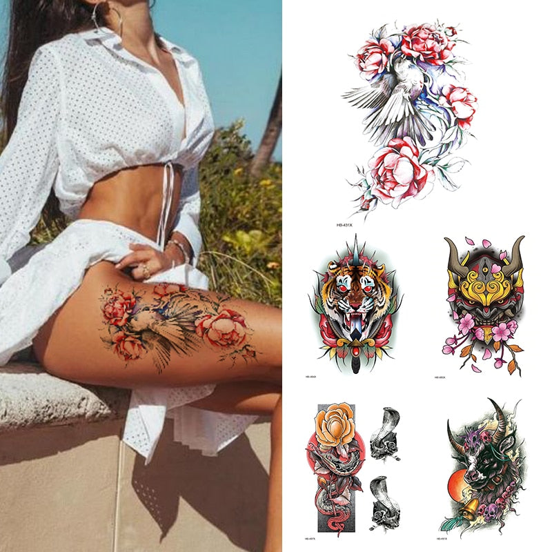 1Sheet Rose Flower Tiger Water Transfer Tattoo Stickers,Women Body Art Temporary Tattoos,Girl Back Breast Tatoos