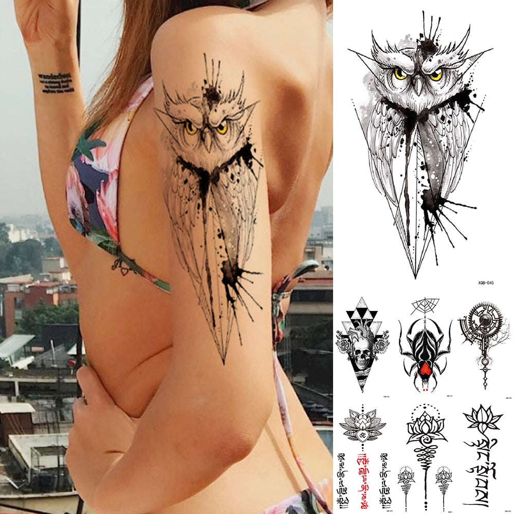 1Sheet Waterproof Temporary Tattoo Sticker Rose Owl Flash Tattoos Spider Skull Sanskrit Body Art Arm Fake Tatoo Women Men