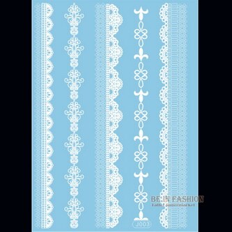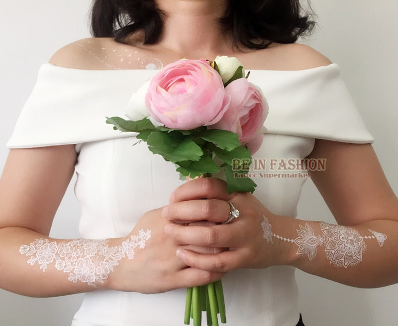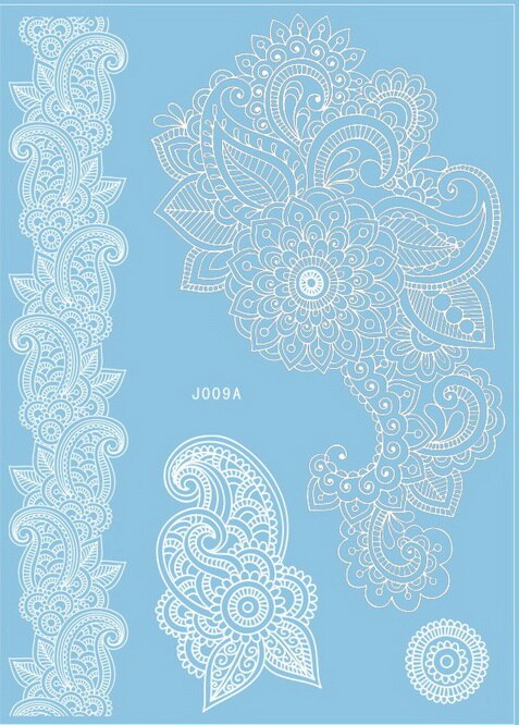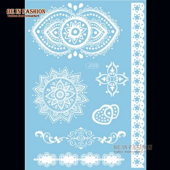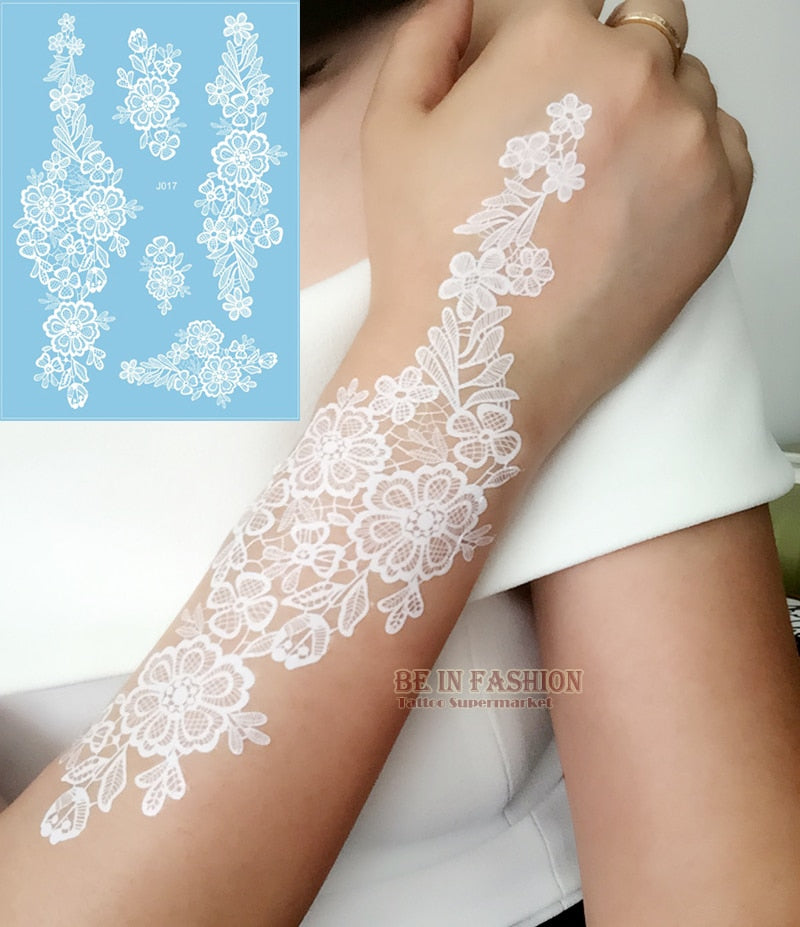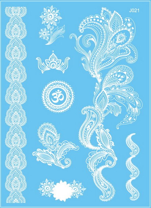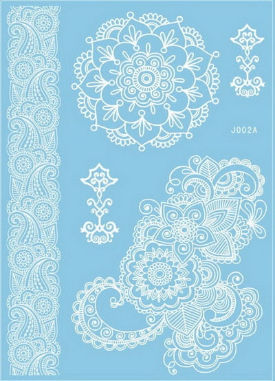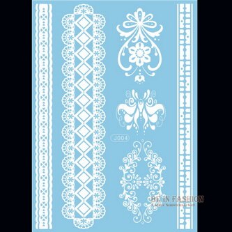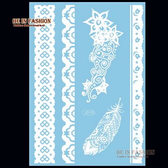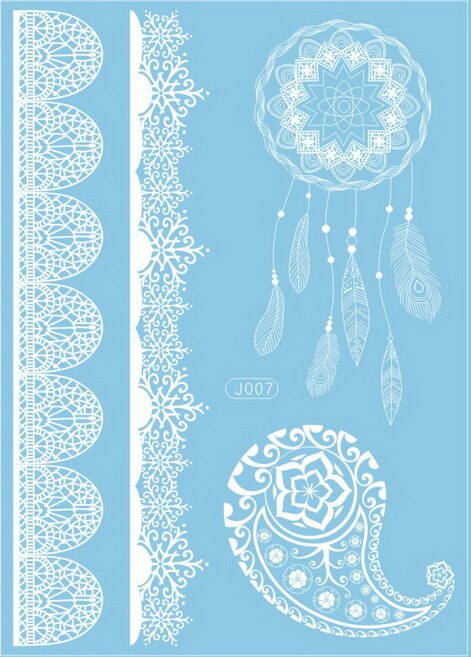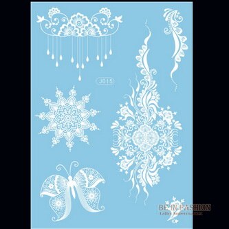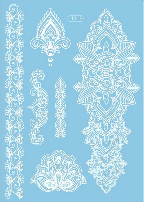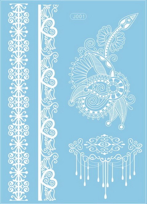 1sheet White Lace Henna Flash Tattoo Butterfly Feather Fake Temporary Tatoo Sticker Summer Style Body Art Beauty Jewelry J017