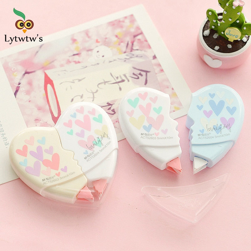 2 Piece Lytwtw's Cute Love Heart Correction Tape Aterial Escolar Kawaii Stationery Office School Supplies Papelaria 10M Length