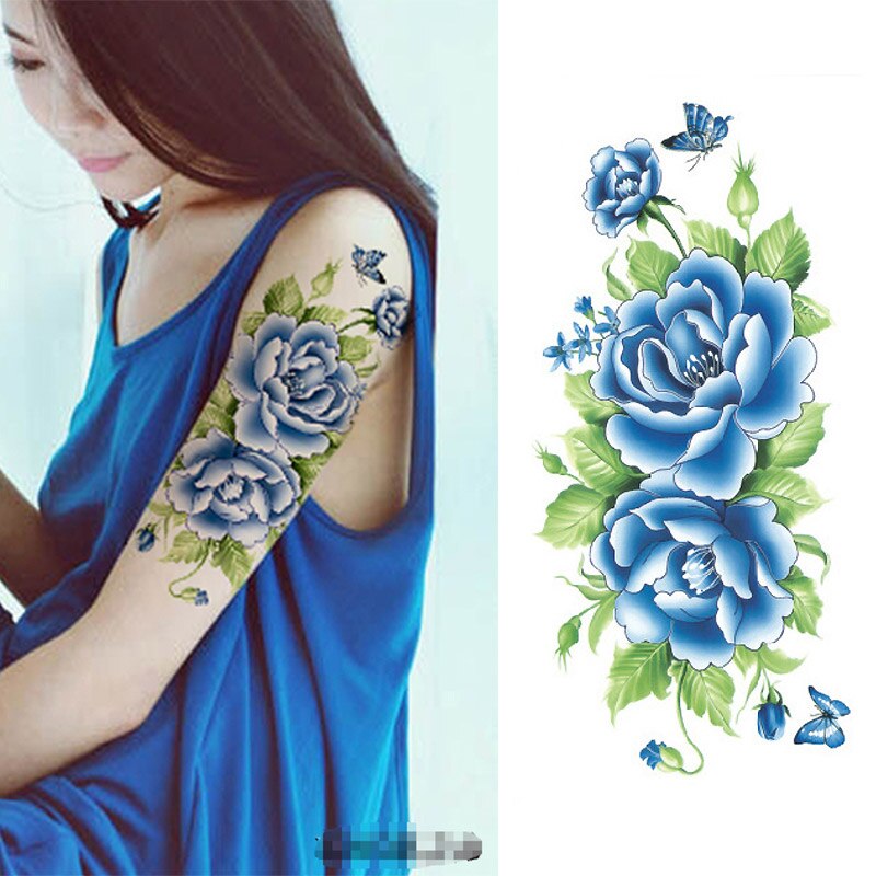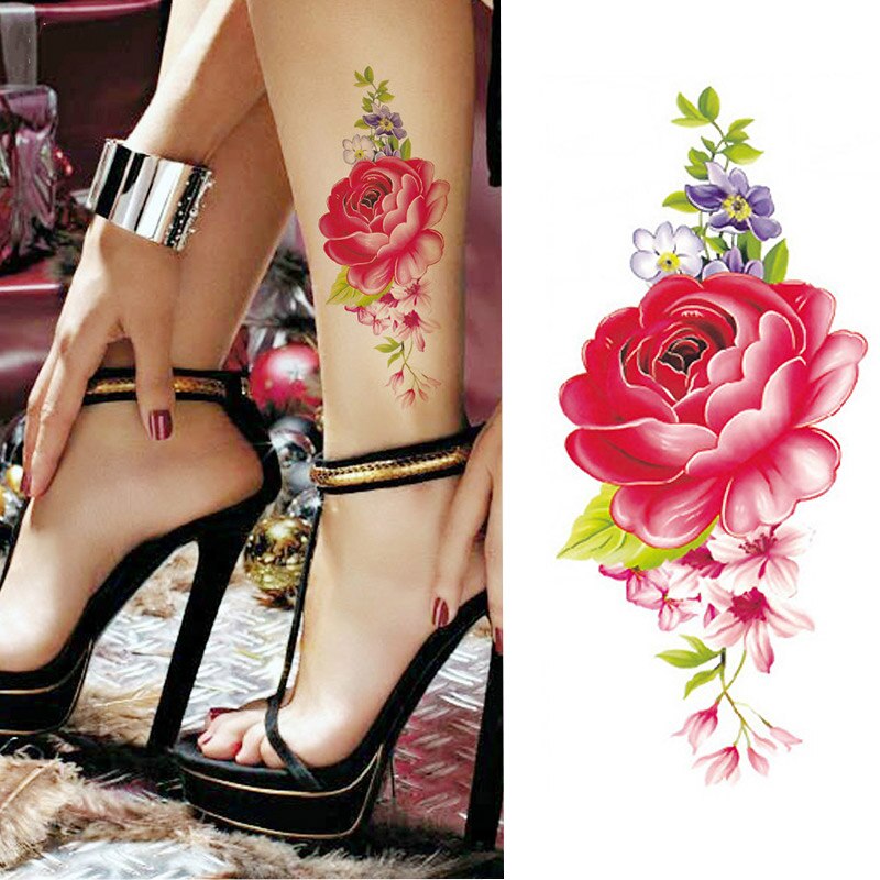 2017 Waterproof temporary tattoos stickers sexy romantic dark rose flowers henna fake body art flash tattoo sleeve