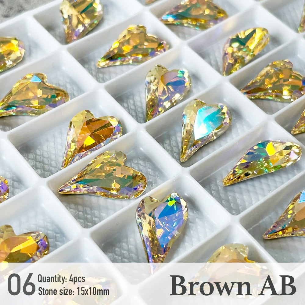 2021 New Crystal Long body Heart Nail Stone heart zircon high quality Nail Jewelry Nail Decoration Nail Parts