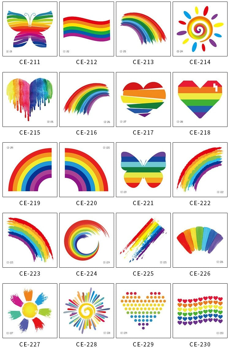 20pcs/Set Rainbow Temporary Tattoo Colorful Pride Day Stickers No Repeat Waterproof LGBT Body Art Disposable tatouage temporaire