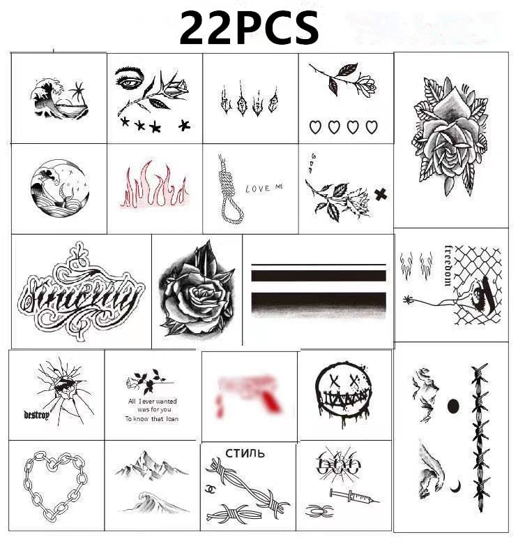 22 Sheets Waterproof Temporary Body Stickers Rose Flame Mountain Black Faux Tatouage for Men Women Tatouage Tempor