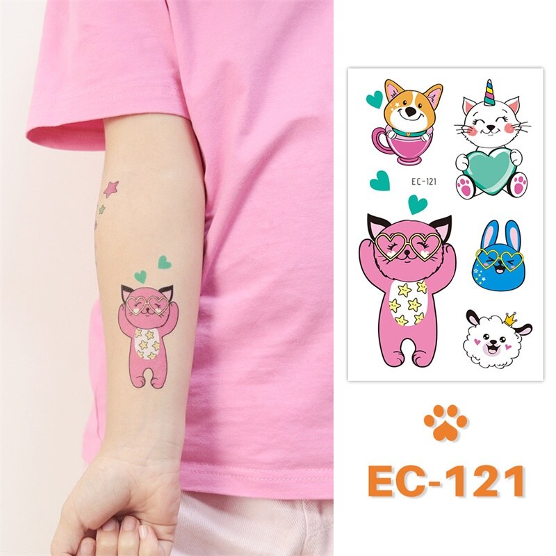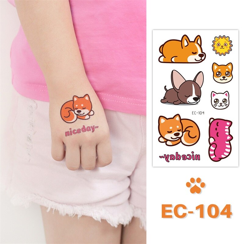 24 kinds Cute Cartoon Tattoo Stickers For Children faux tatouage temporaire Disposable Cat Dog Pets Temporary Waterproof