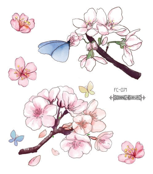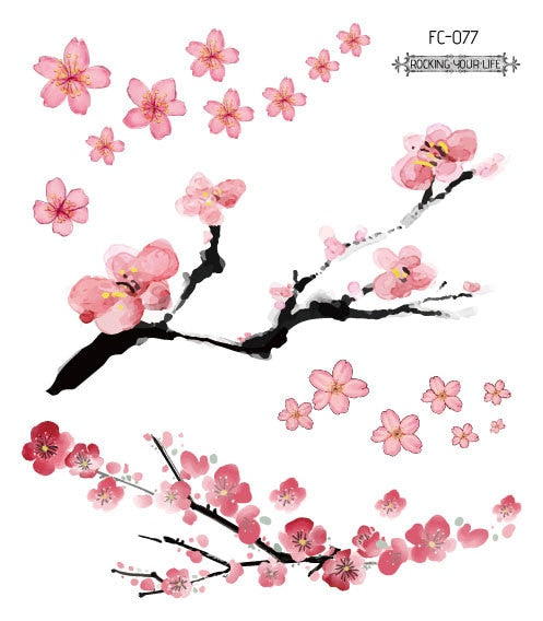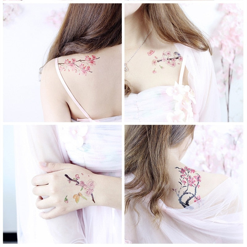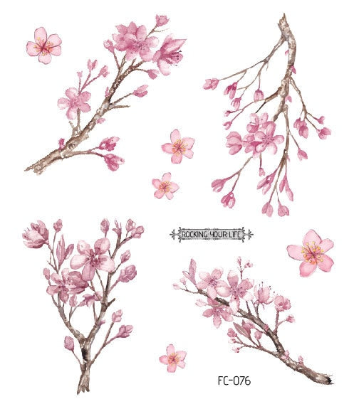 24 Kinds Flower Tattoo Temporary Body Sticker Gradient Color Pink Sakura Flowers Disposable tatouage temporaire