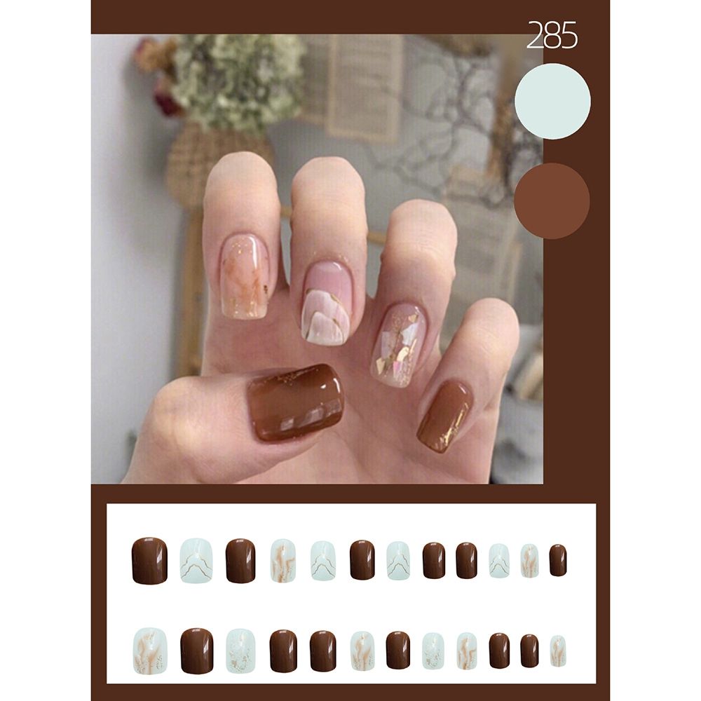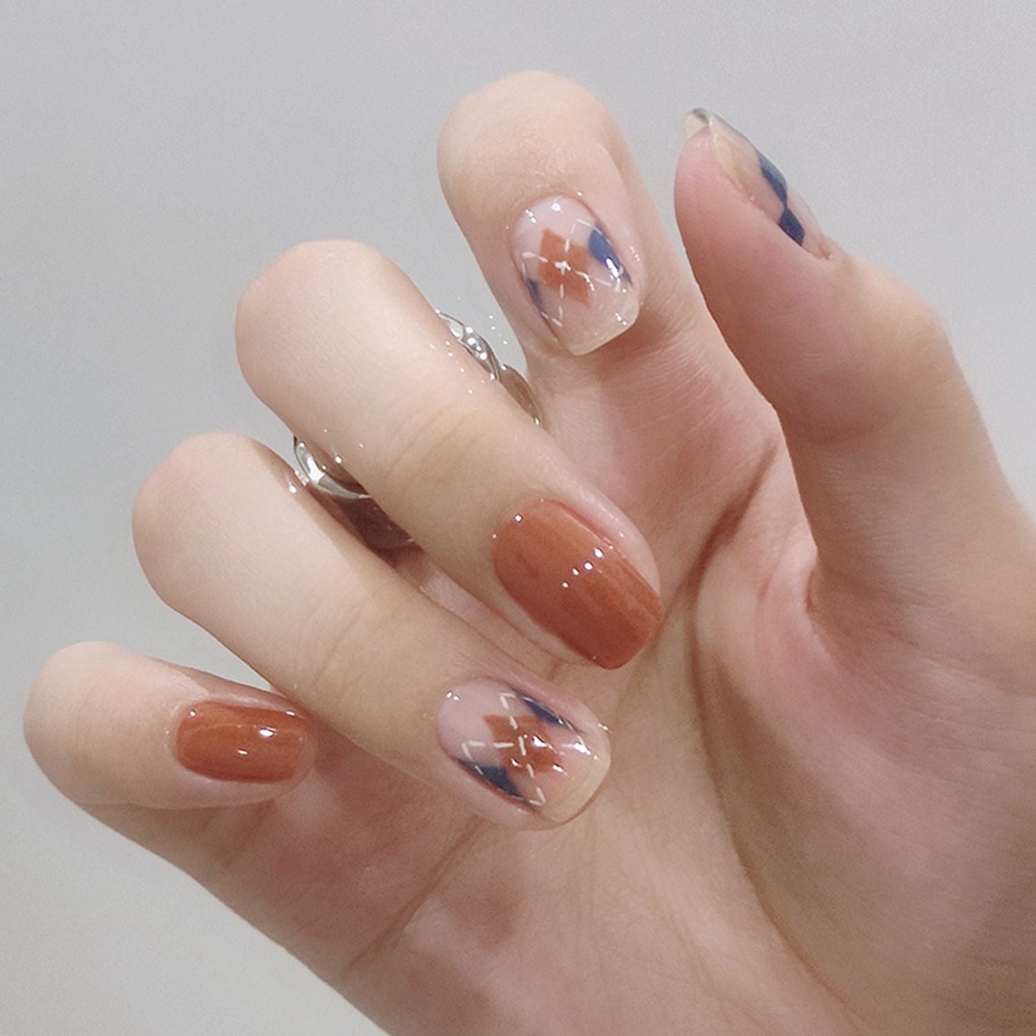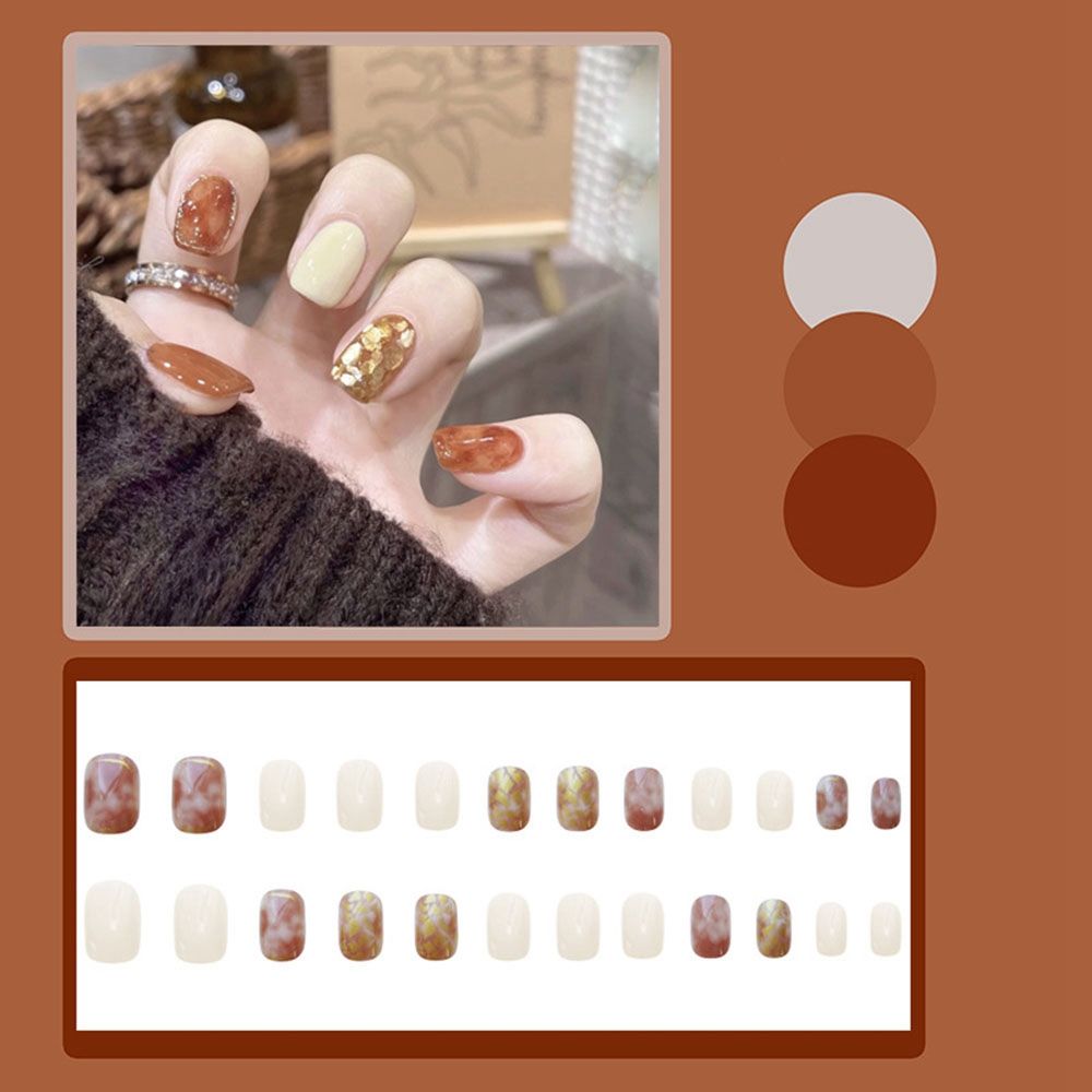 24Pcs Autumn Winter Short Round Head Fake Press On Nail Cute MilkTea Color Blooming Gradient Artificial Nail With Jelly Glue