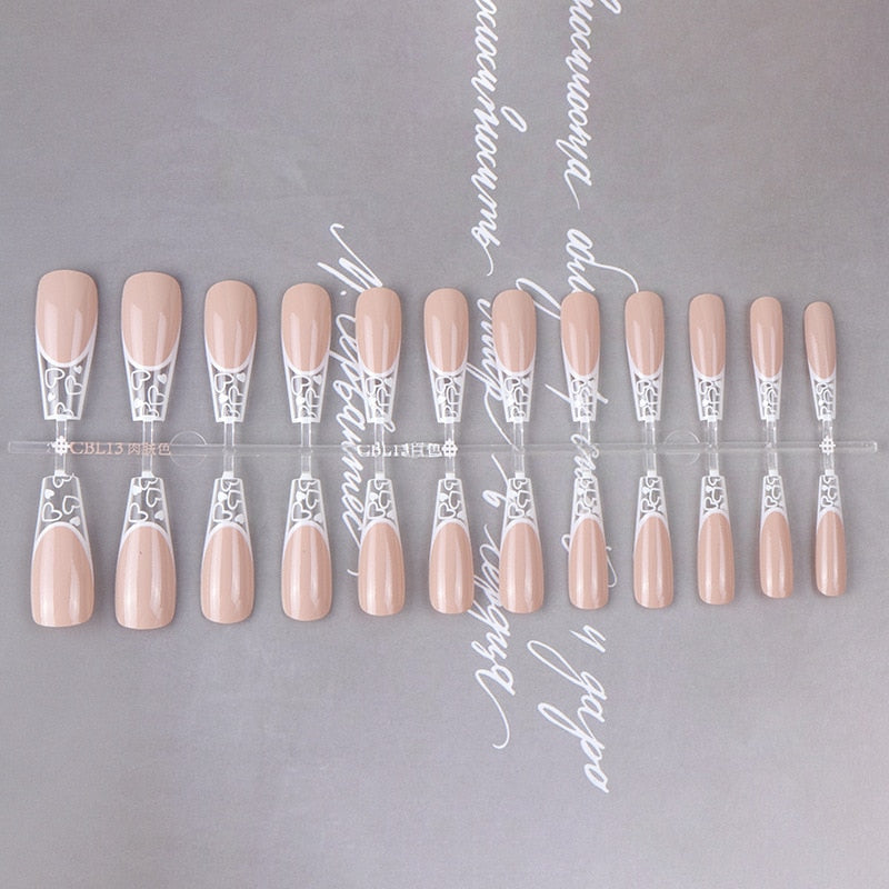24Pcs/Box Heart Long Coffin False Nails Designs Ballerina White Love Pattern Fake Nails Full Cover Nail Tips Press on Nails