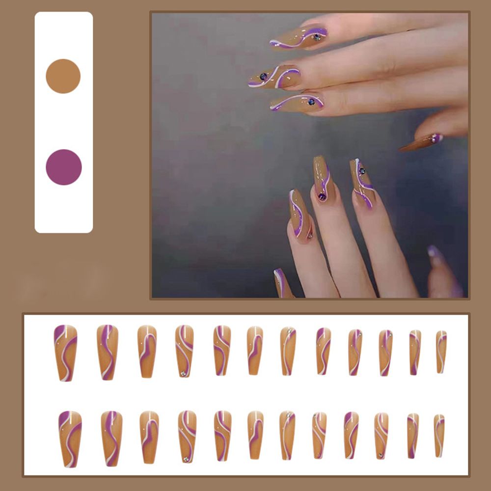24pcs/Box Long Coffin False Nails with Dragon Pattern Design Ballerina Manicure Patches Press On Nails Full Cover Nail Tips