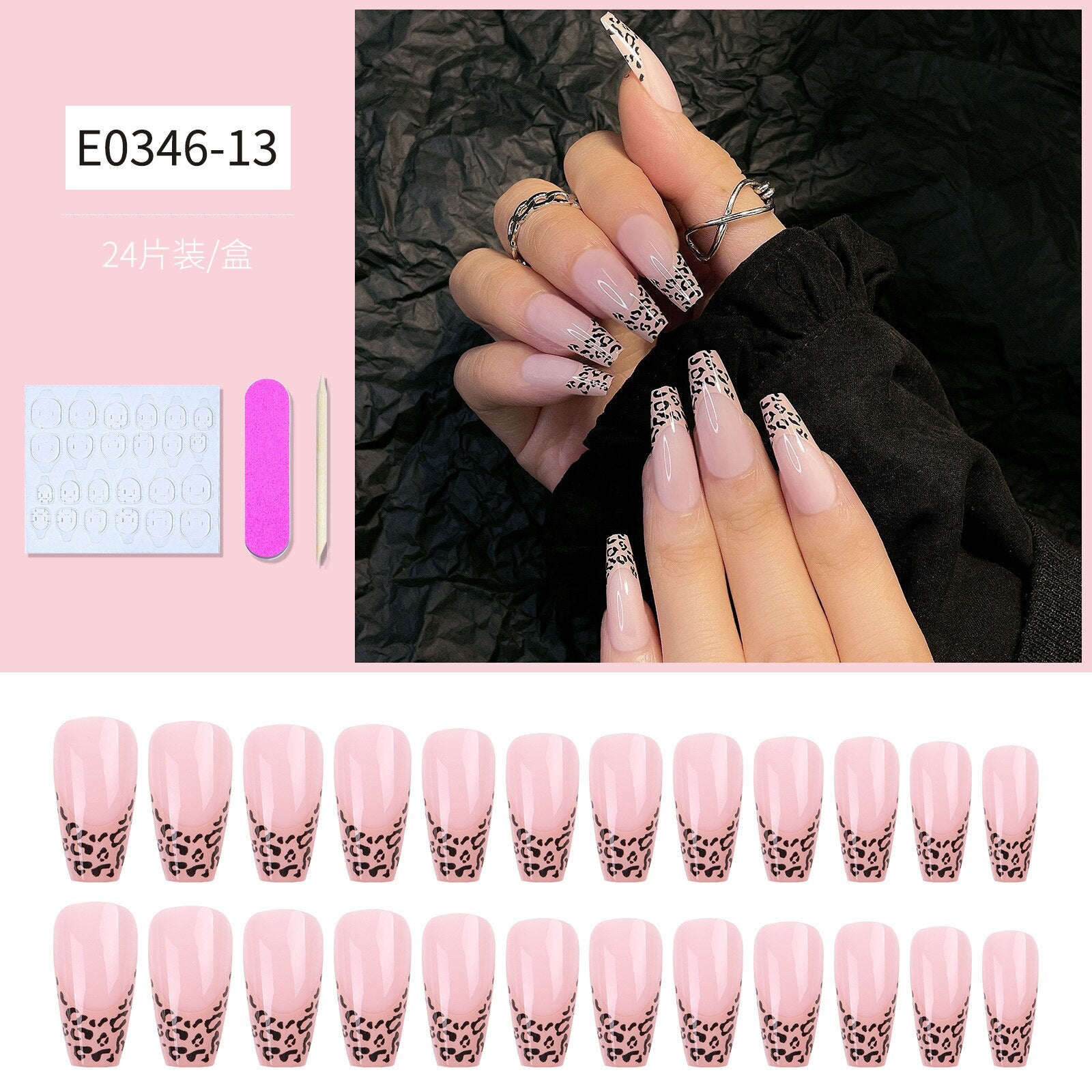 24pcs Detachable Extra Long Coffin False Nails Stick-on nails French Ballerina Fake Nails Full Cover Nail Tips Press On Nails