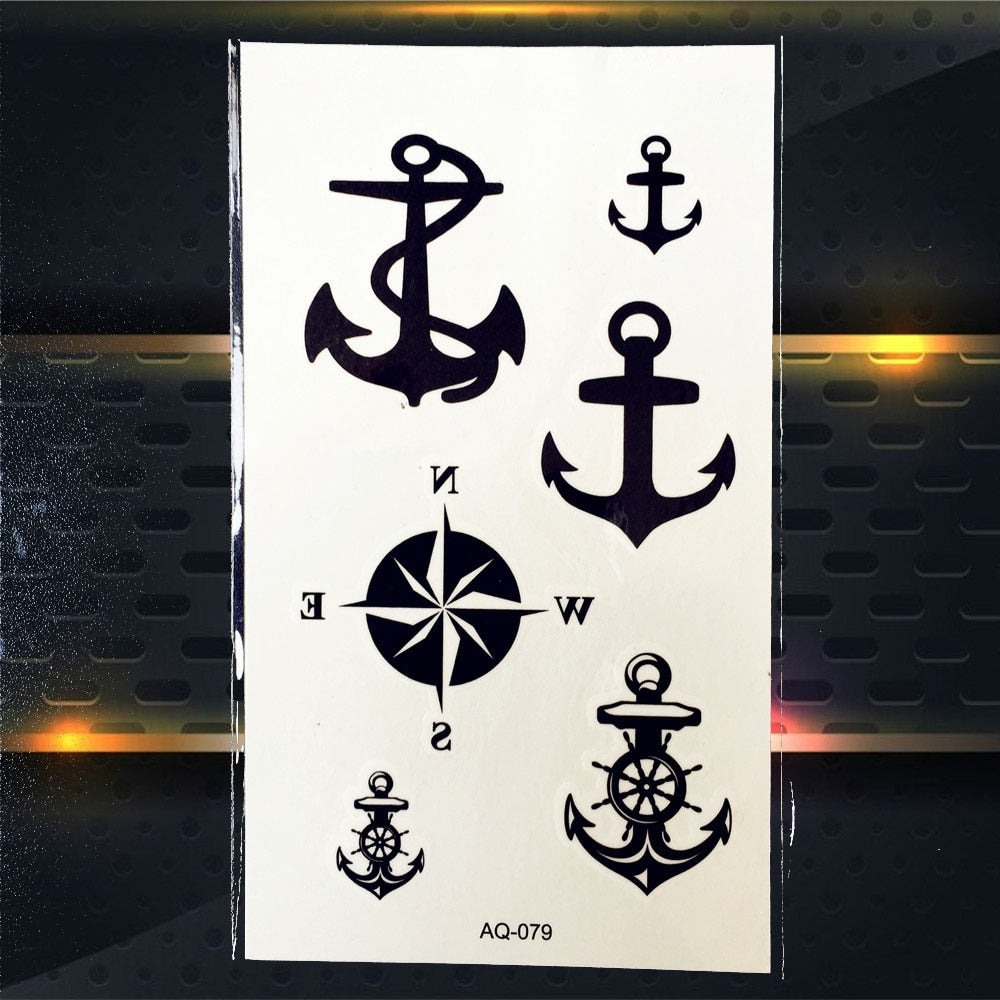 25 Style Harajuku Men Anchor Temporary Tattoo Waterproof Children Temporary Tattoo Stickers Pirates Of The Caribbean Compass