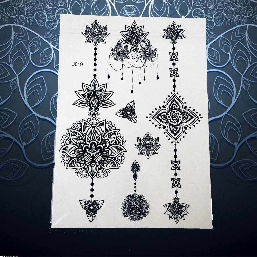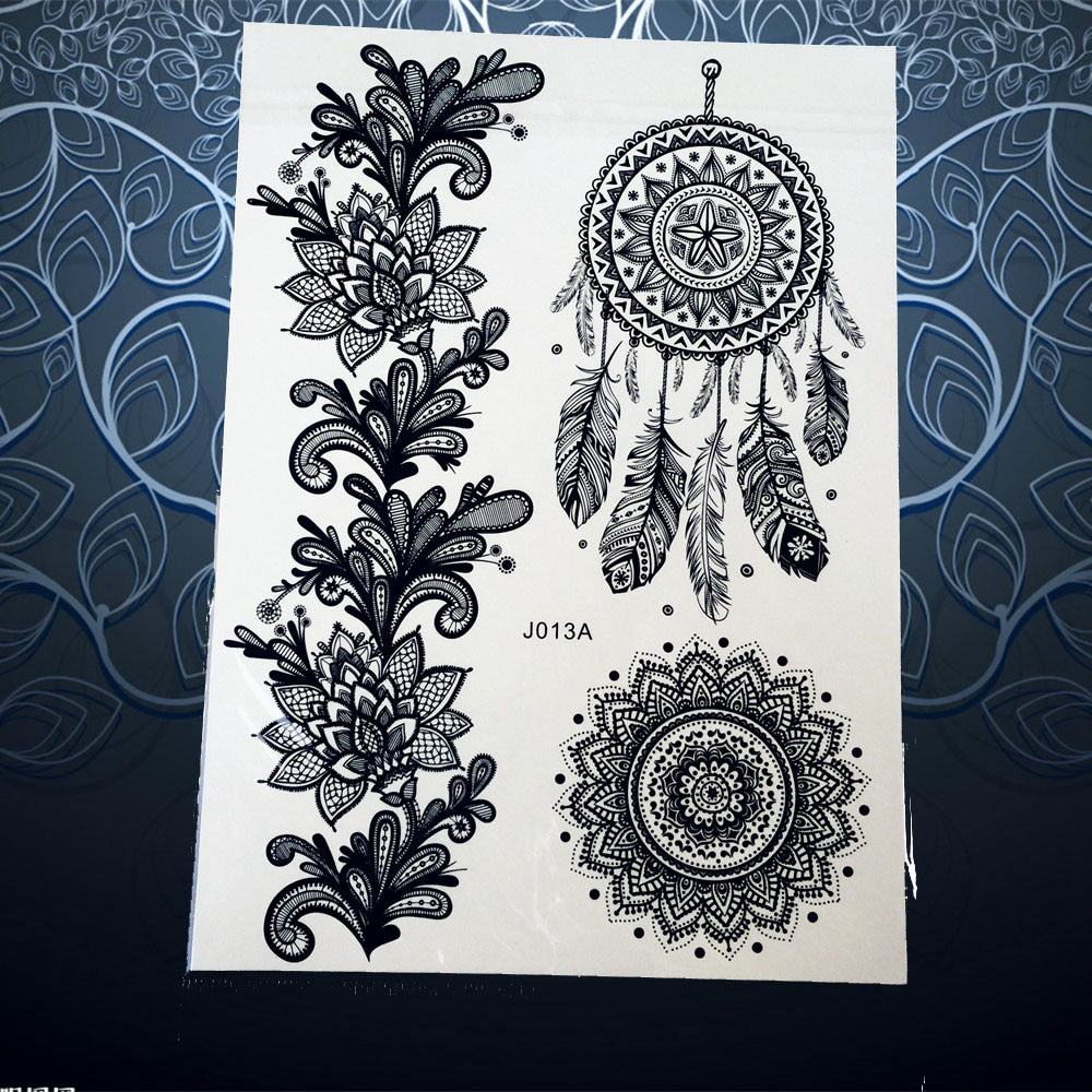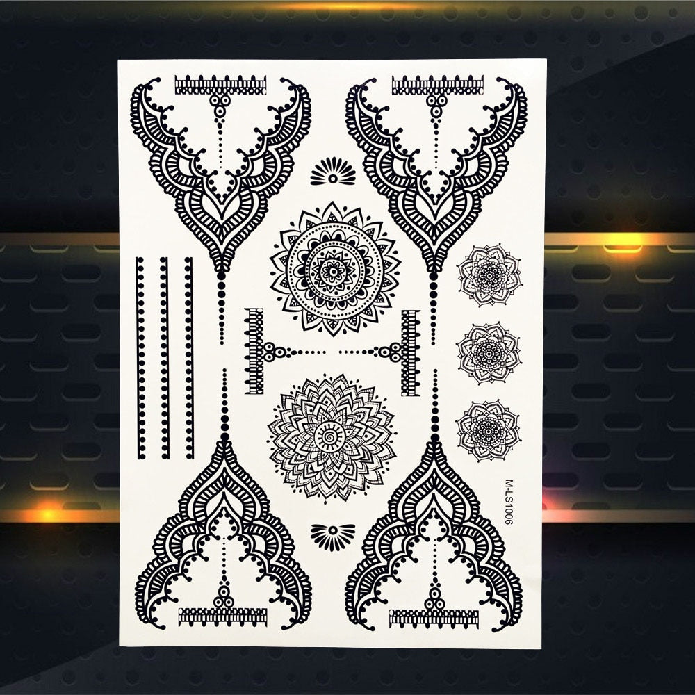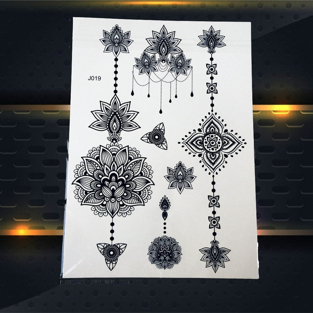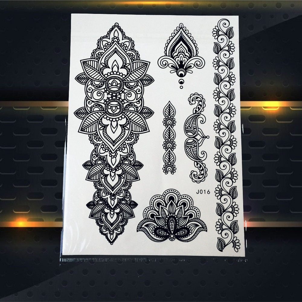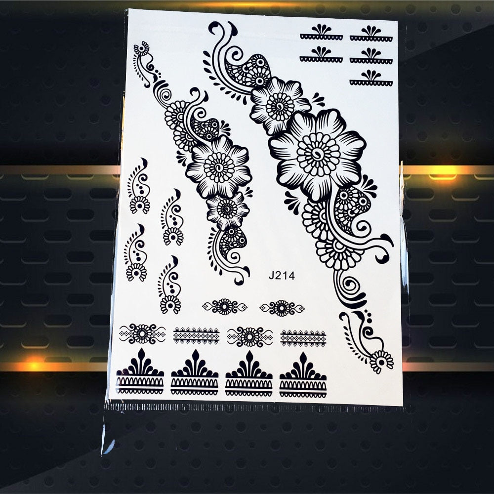 25 Style Hot Waterproof Black Henna Tattoo Fake Mandala Flower Arm Hand Tatoo Owl Decals Women Body Art Temporary Tattoo Sticker