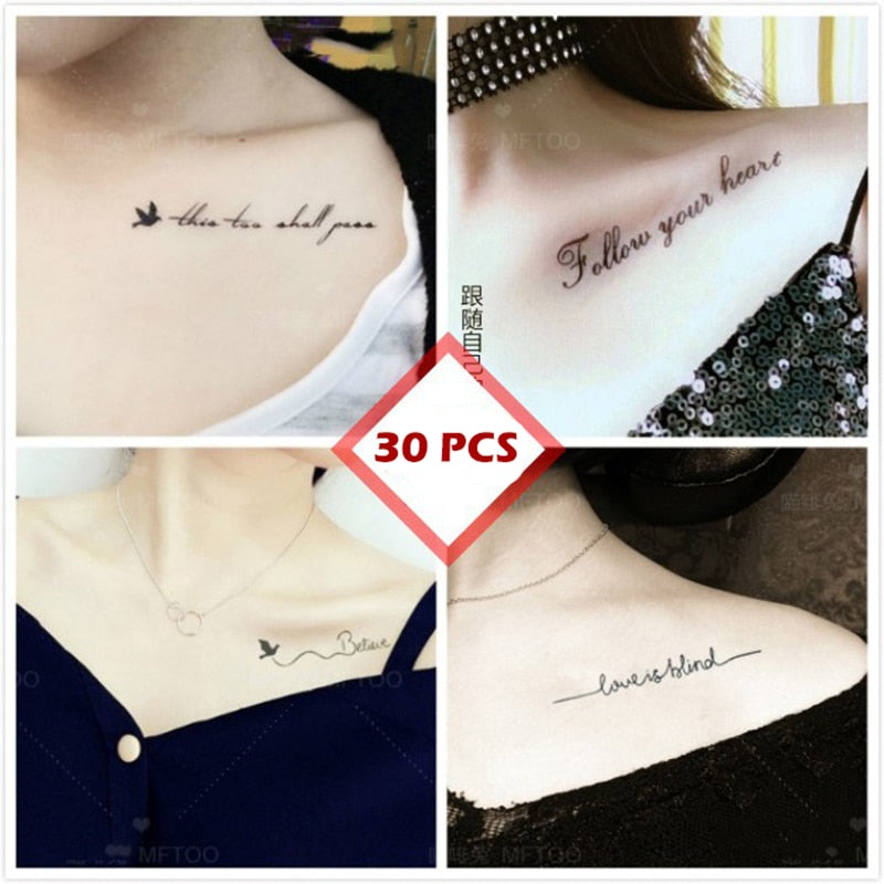 30 Sheet Waterproof Temporary Tattoo Sticker Black Devil Doesn't Sleep English Letters Tatoo Fake Tatto Neck Wrist For Woman Men