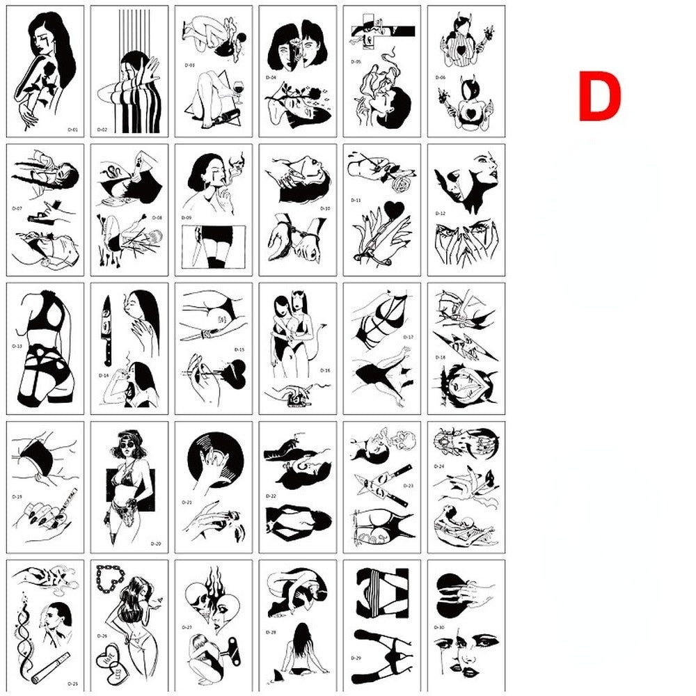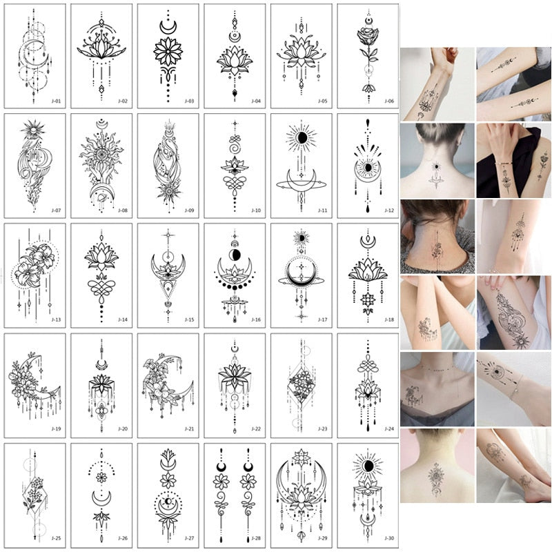 30pcs Ankle Black Line Body Art Flash Fake Waterproof Temporary Tattoos Women Arm Leg Chest Tatto Stickers Custom Flower Tatoos