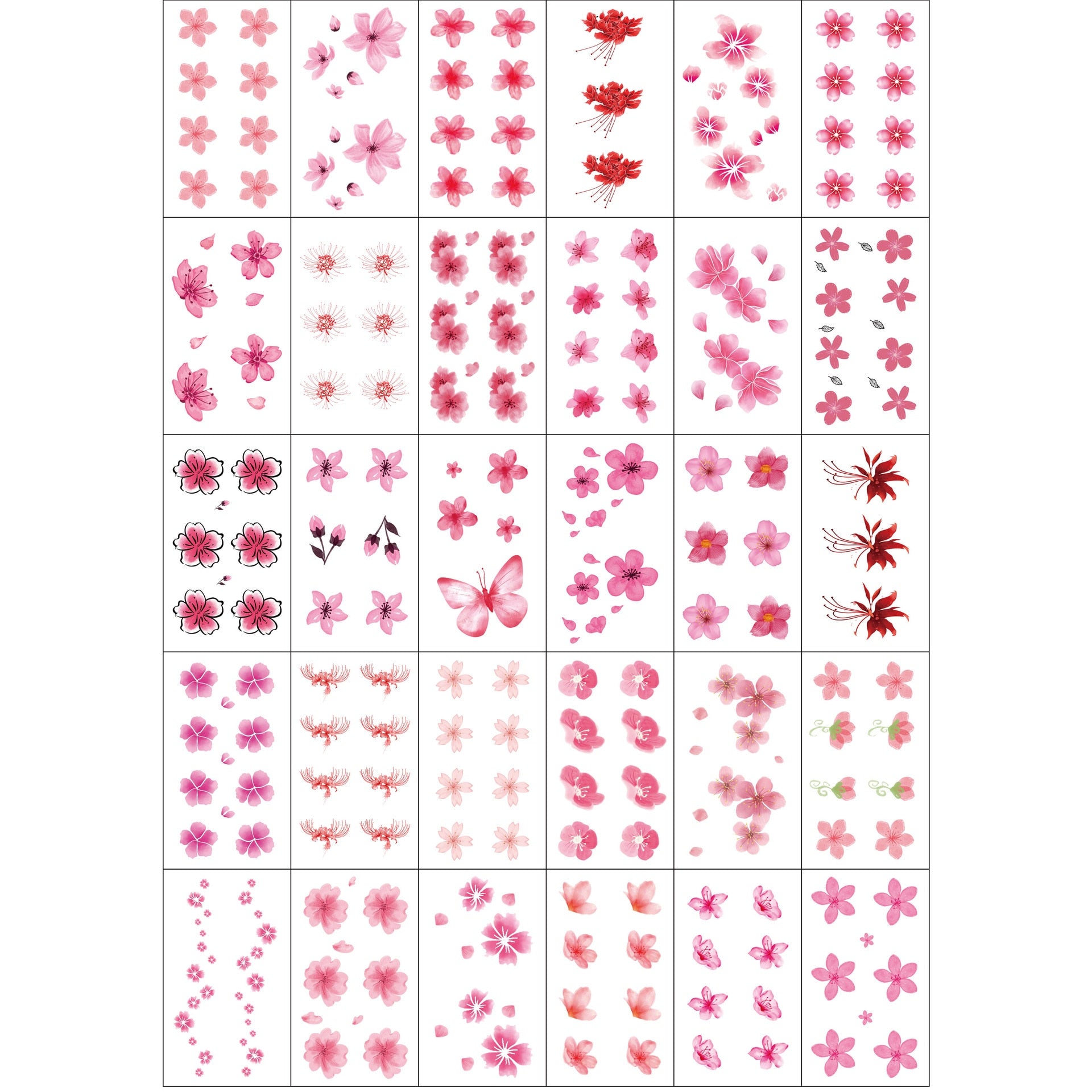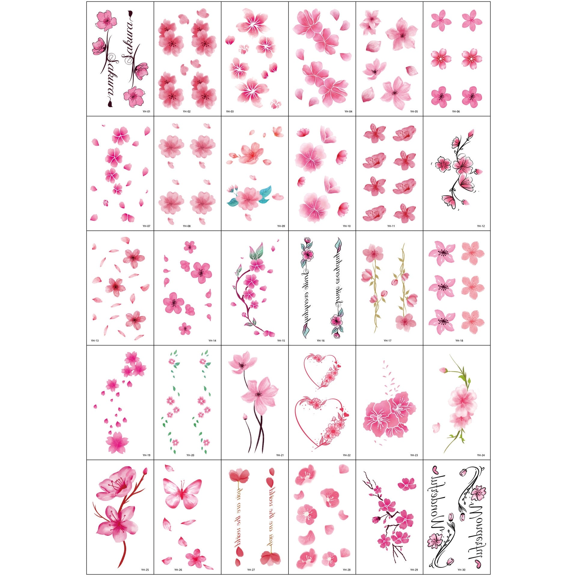 30Pcs Flowers Fake Sakura Tattoo Stickers Chest Taty Waterproof temporary Tatto Brid Cherry Blossom For Women Tattoo Body makeup