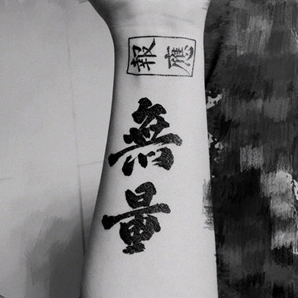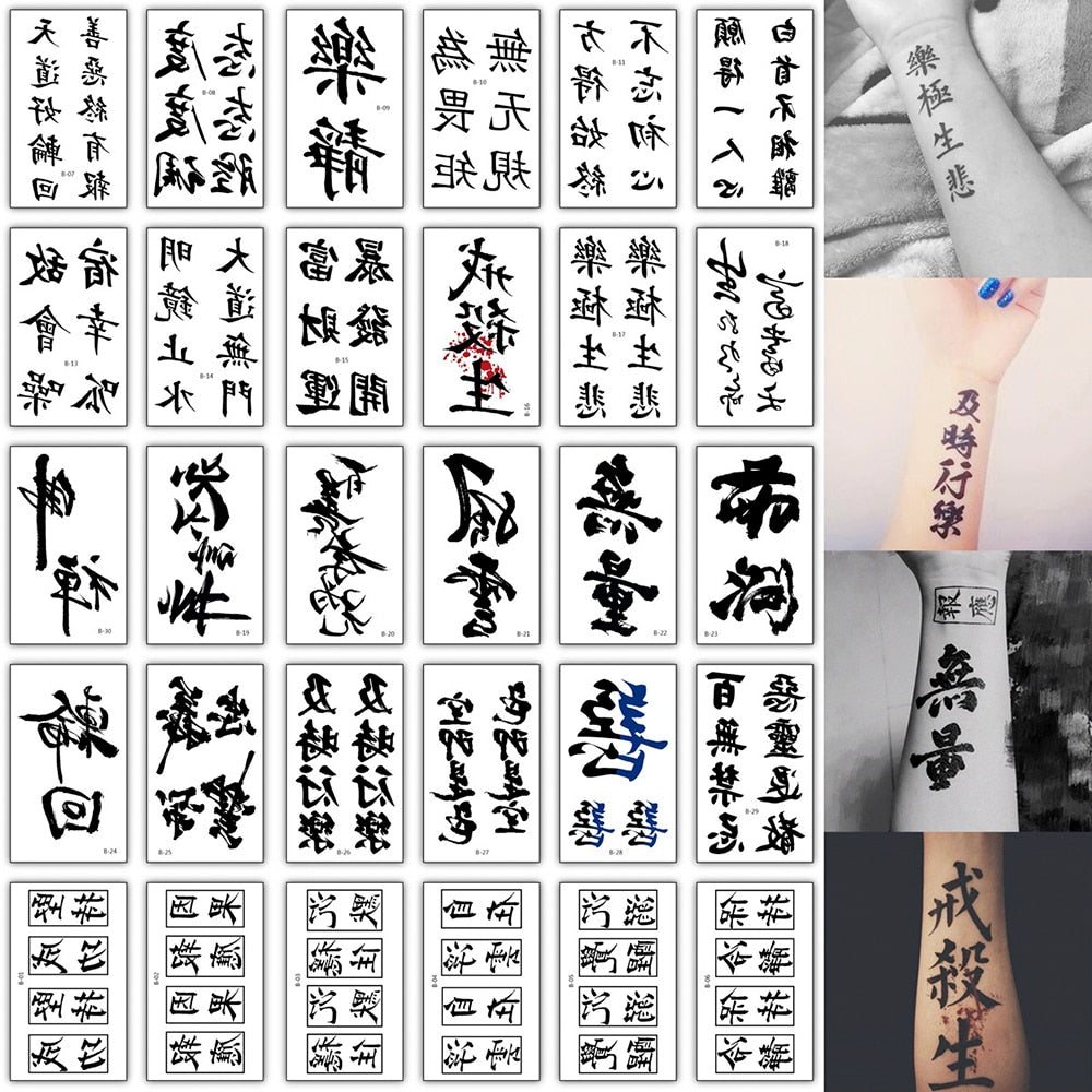 30Pcs/Lot Chinese character Temporary Tattoo Sticker Body Art Black Arm Flash Tattoo Stickers Waterproof Fake Tatoo Boys Mens