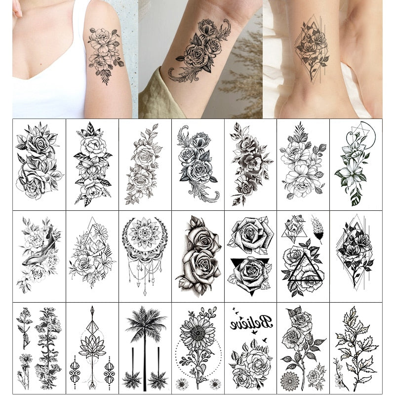 30PCS/Lot Sexy Fake Sketchs Flowers Tattoo for Woman Hands Arm Body Waterproof Temporary Tattoos tatouage temporaire femme