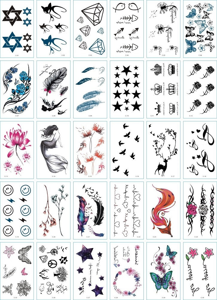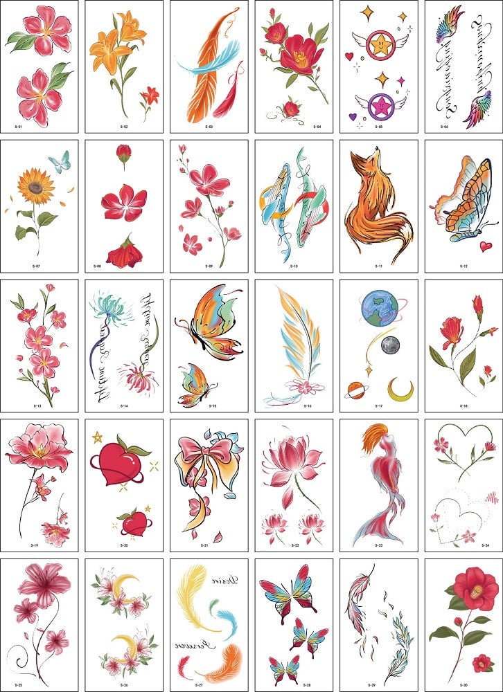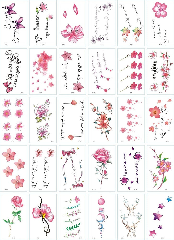30Pcs/Set No Repeat Temporary Tattoo Stickers Waterproof Arm Clavicle Body Art Sticker Disposable butterfly tatouage temporaire