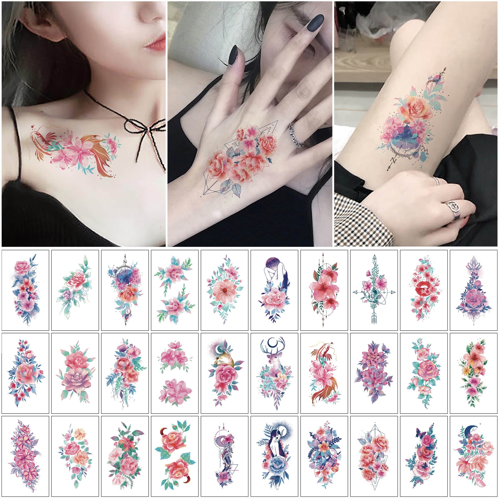 30Pcs Temporary Tattoo Sticker Face Hand Arm Leg Body Art Fake Tatoo Waterproof temporary tattoos Flowers tatuajes temporales